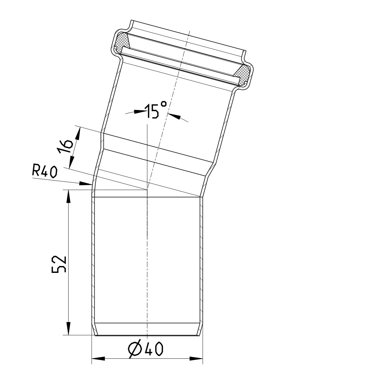 15 st. Kolano DN =40 mm, stal kwasoodporna