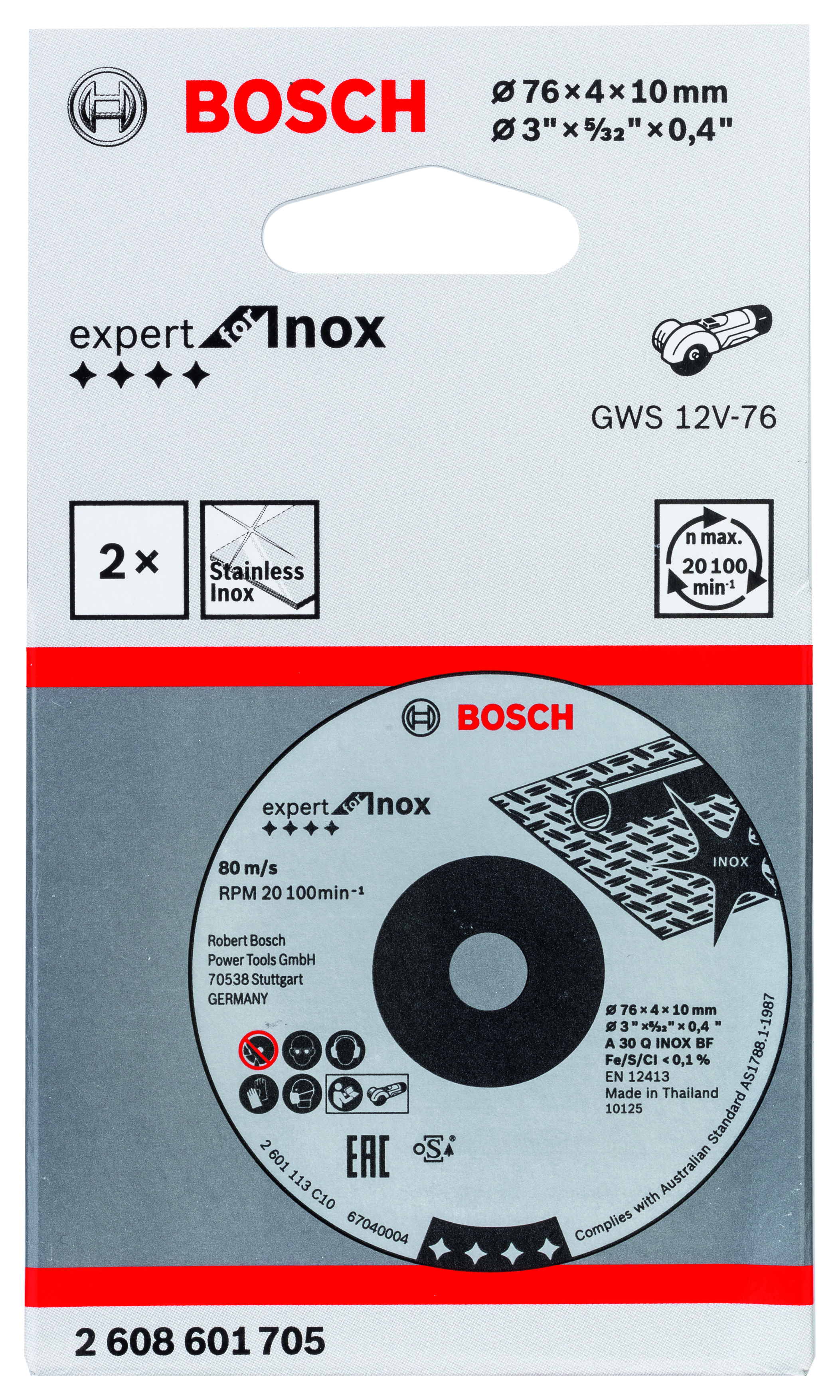 2 tarcze ścierne Expert for INOX, 76 x 4 x 10 mm A 30 Q INOX BF, 76mm, 4mm, 10mm