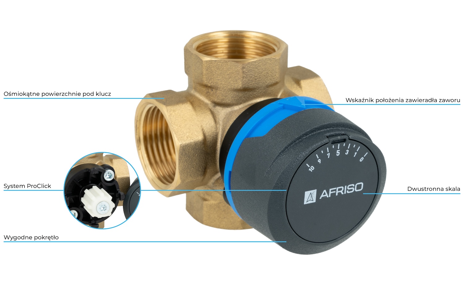 Do ciągłego zabezpieczania kotła przed zbyt niską temperatura powrotu konieczne jest zautomatyzowanie pracy zaworu montując na nim siłownik ARM ProClick połączony z odpowiednim regulatorem lub regulatora zintegrowany z siłownikiem ACT / ARC ProClick.