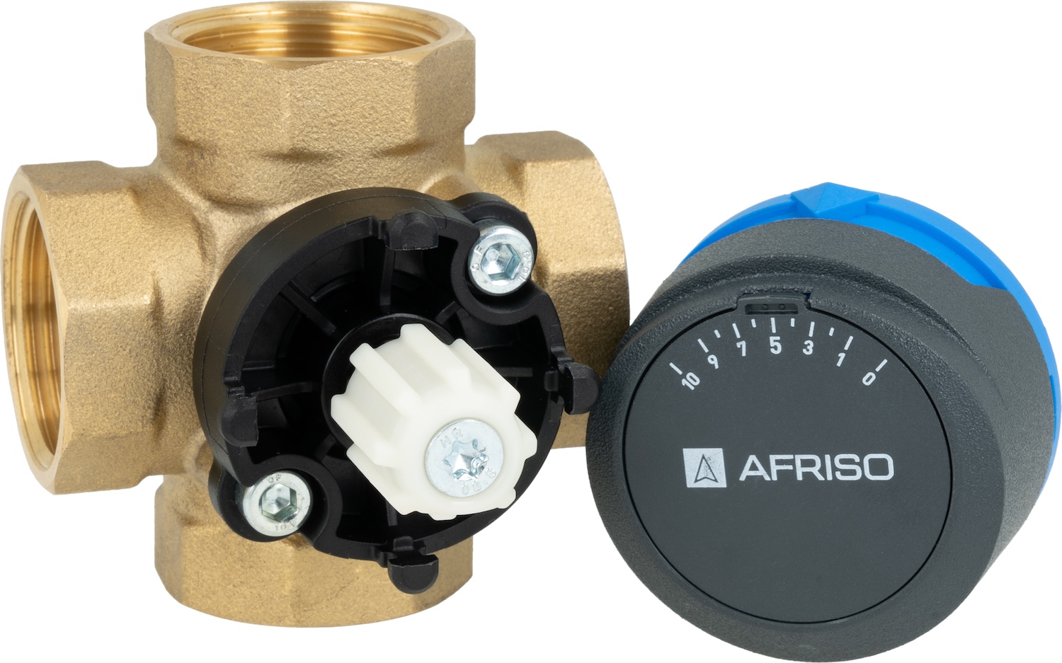 Stosowany w instalacjach grzewczych z kotłami na paliwa stałe.Montowany na zasilaniu instalacji jako zawór z podwójnym mieszaniem.