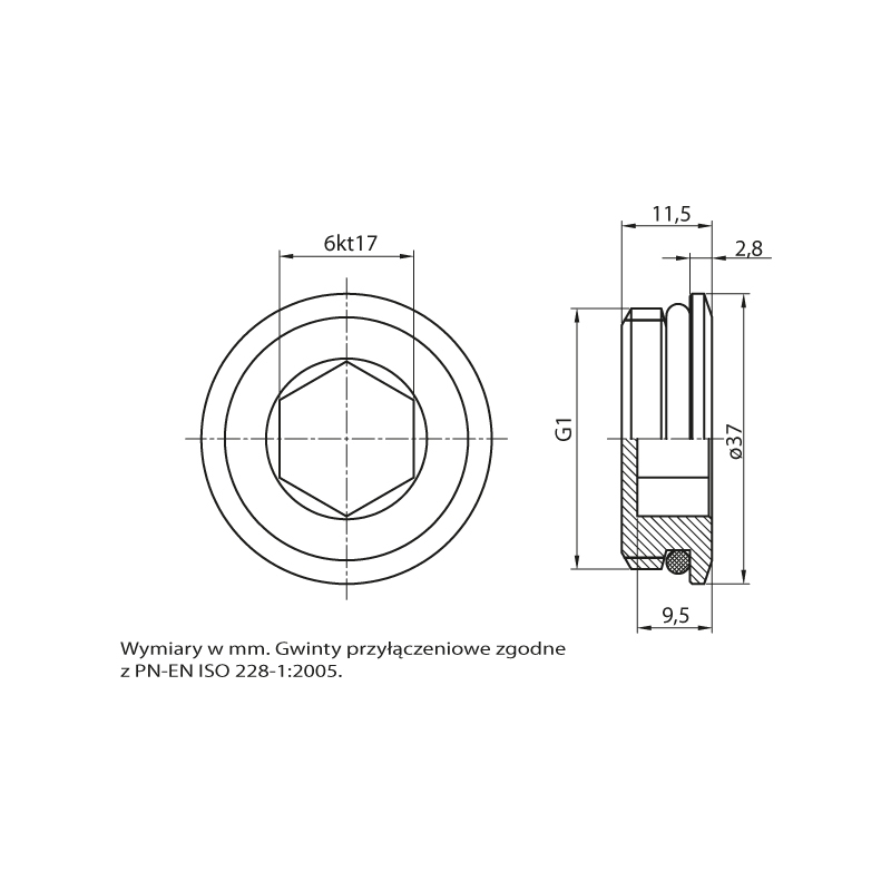 749 GZ G1 Korek zamykający do belki rozdzielacza mosiężnego z o-ringiem