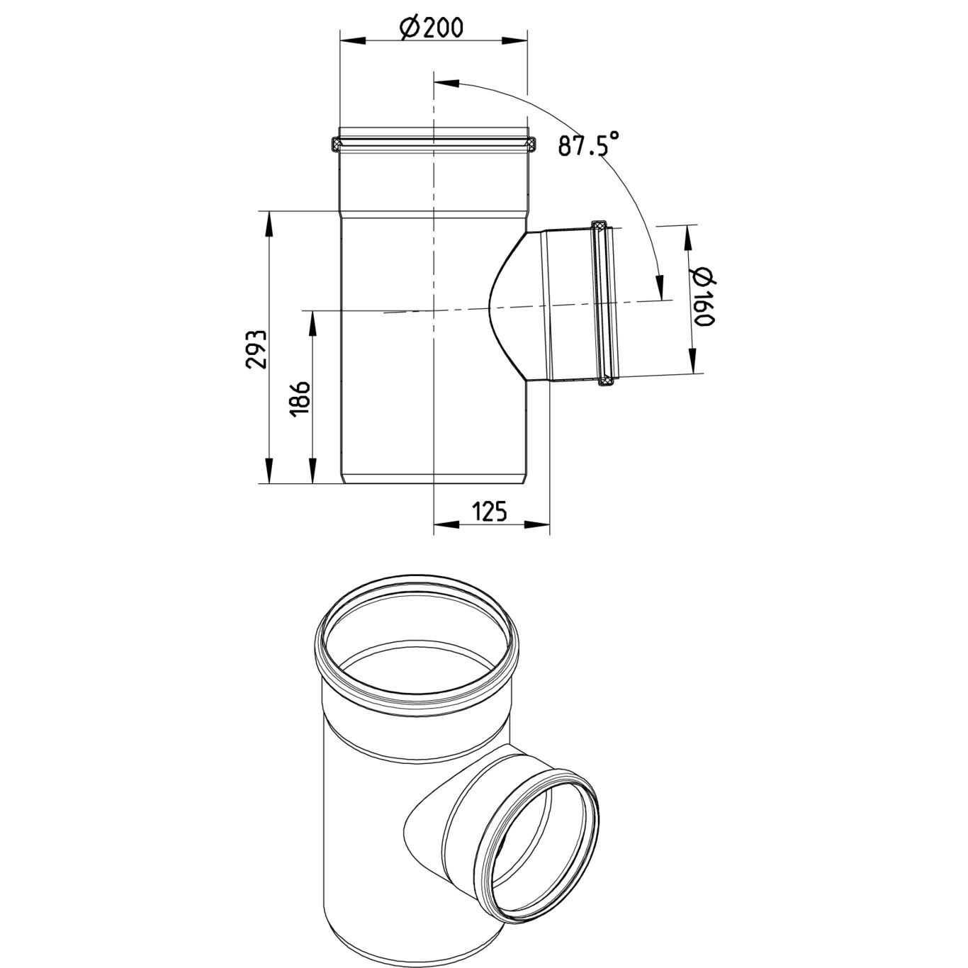 87.5 st. Trójnik DN =200x160 mm, stal kwasoodporna