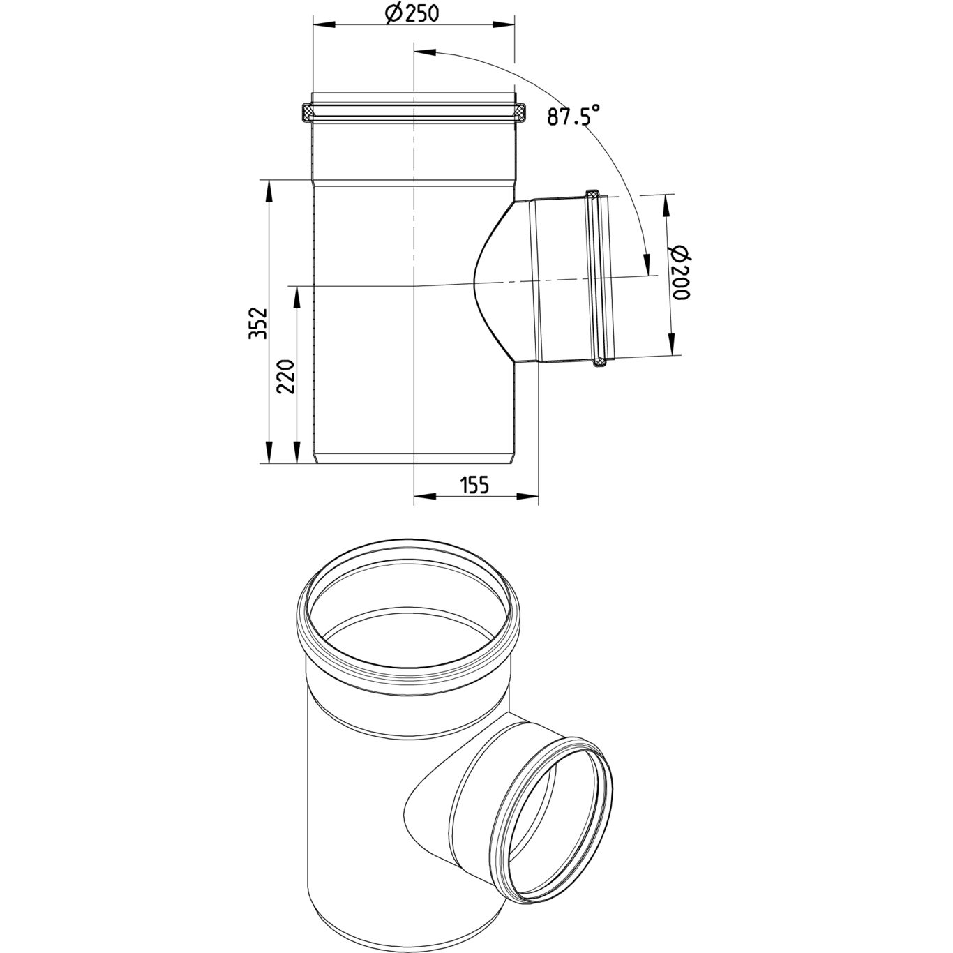 87.5 st. Trójnik DN =200x250 mm, stal kwasoodporna