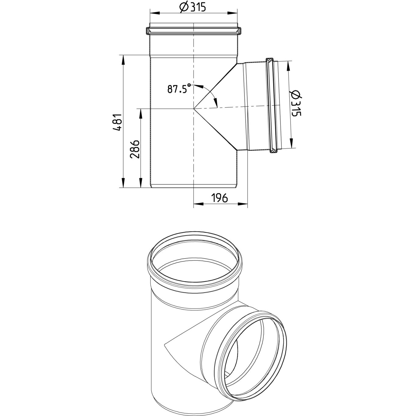 87.5 st. Trójnik DN =315x315 mm, stal kwasoodporna