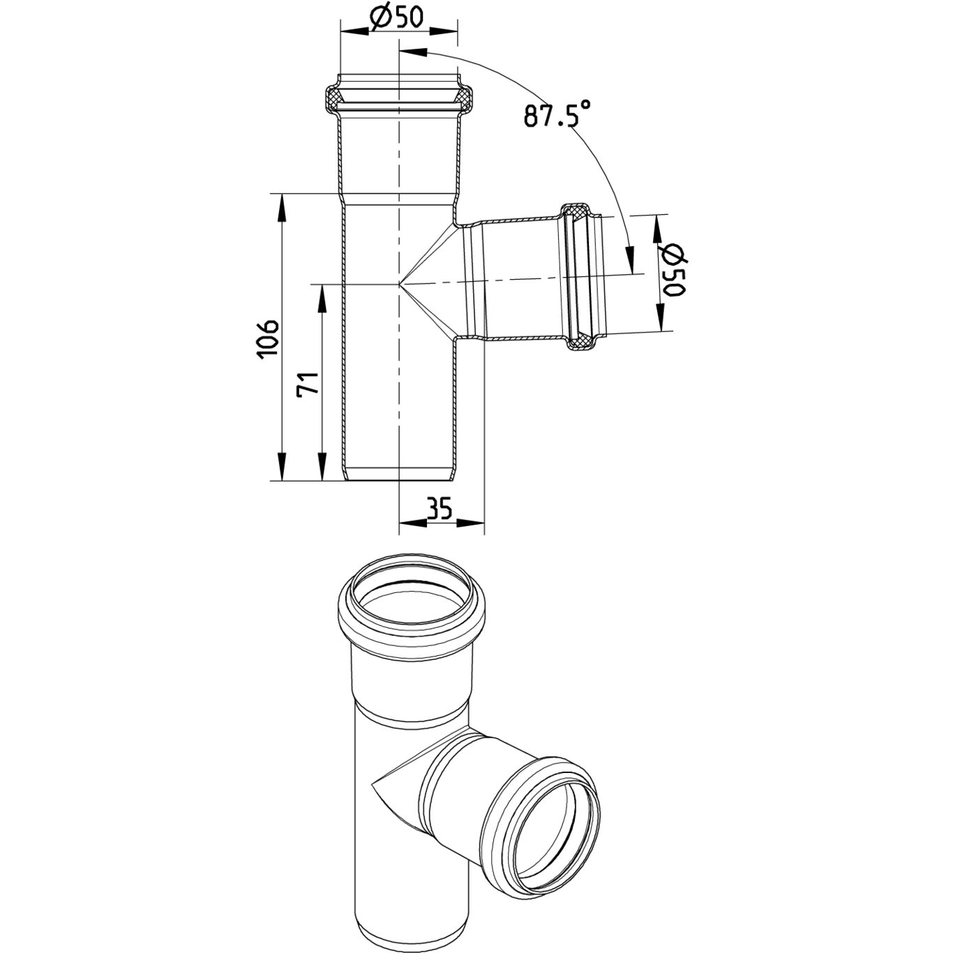 87.5 st. Trójnik DN =50x50 mm, stal kwasoodporna