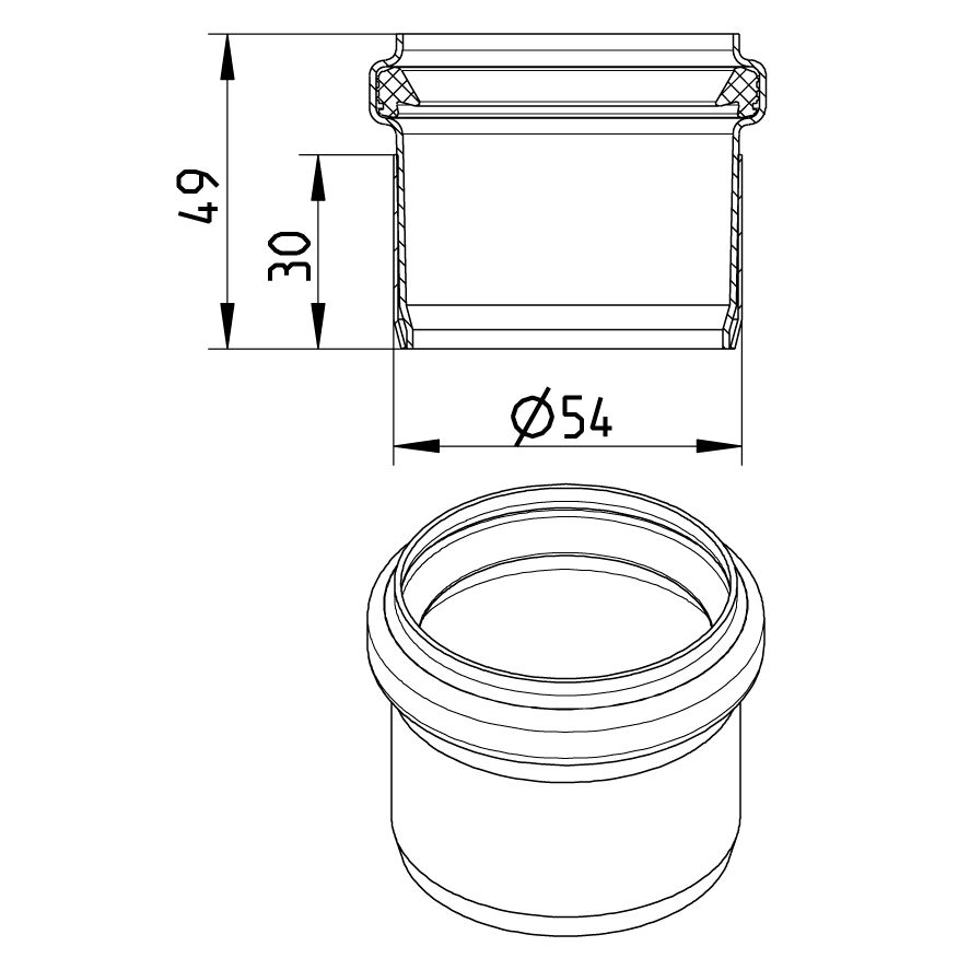 Adapter fo rur PCV, DN =50/54mm, stal kwasoodporna