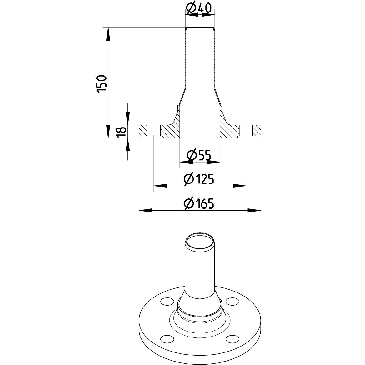 Adapter, rura z bosym końcem i kołnierzem, DN =40mm, stal kwasoodporna