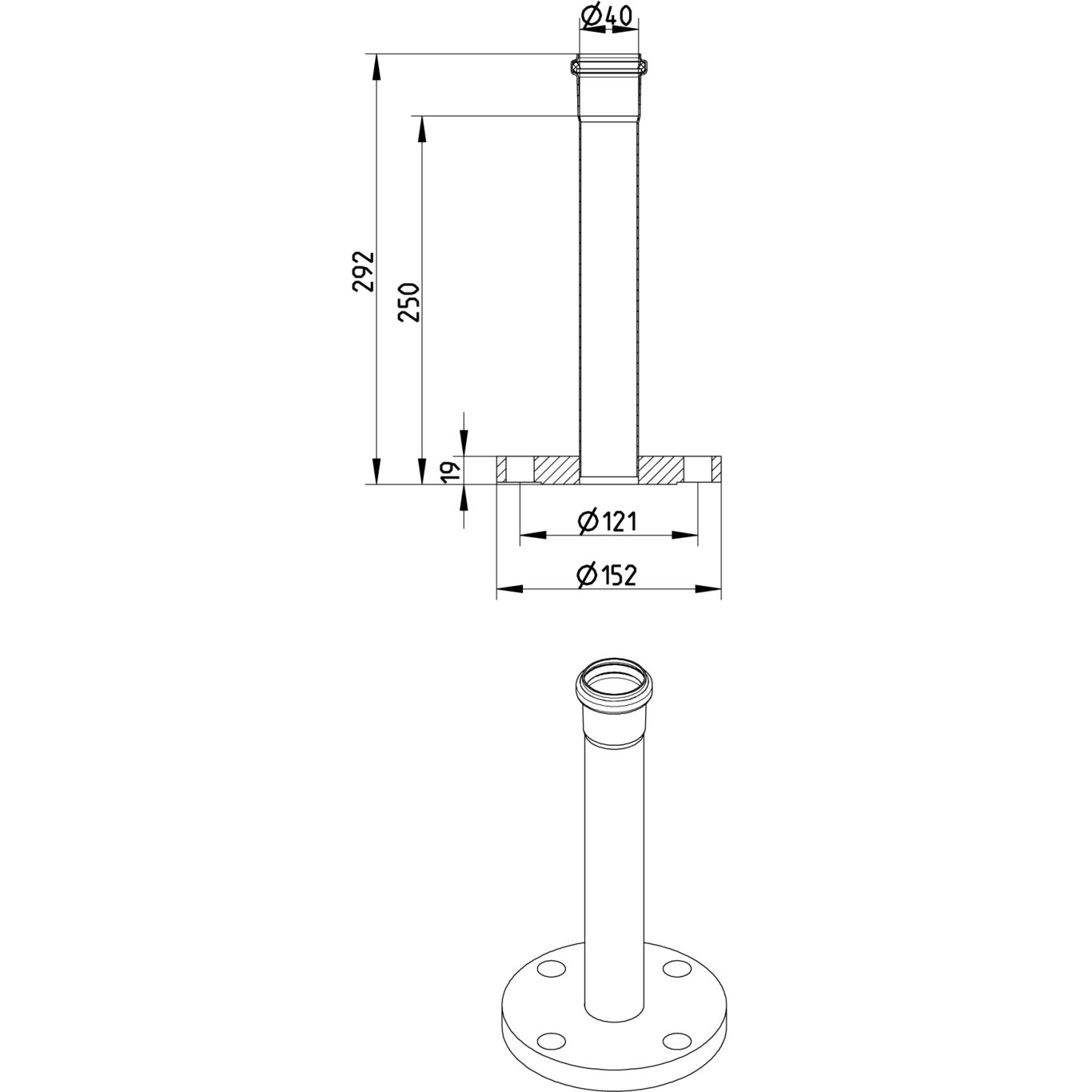 Adapter, rura z kielichem i kołnierzem, DN =40mm, stal kwasoodporna