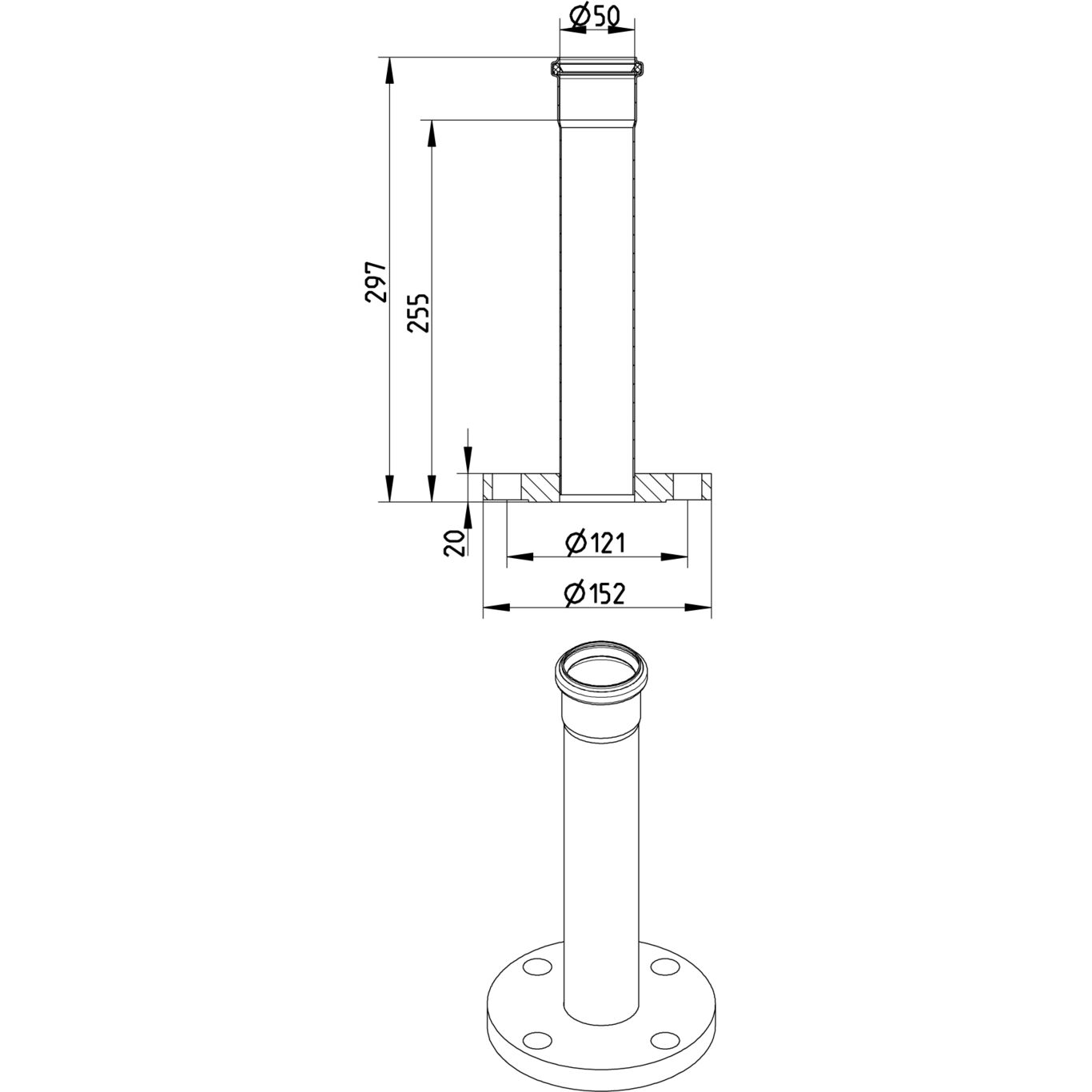 Adapter, rura z kielichem i kołnierzem, DN =50mm, stal kwasoodporna