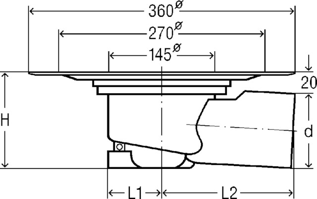Advantix-korpus odpływu podłogowego nie występuje: nasadka, nr wzoru 4955.25 DN: 70 d: 75 L1: 68 L2: 130 H: 120 wydajność odpływu przy wysokości spiętrzenia 10 mm: 0.6 wydajność odpływu przy wysokości spiętrzenia 20 mm: 1.1 odpływ poziomy