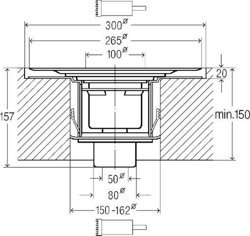 Advantix-odpływ łazienkowy ochrona przeciwpożarowa R120 korpus PP, nie występuje: nasadka, nr wzoru 4926.20 DN: 50 odpływ pionowy