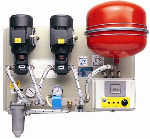 Dzięki zastosowaniu układu z dwiema pompami, zwiększamy ich żywotność jak również zapewniamy nieprzerwaną pracę układu w przypadku awarii jednej z pomp druga sprawna pompa przejmuje pracę po uszkodzonej.