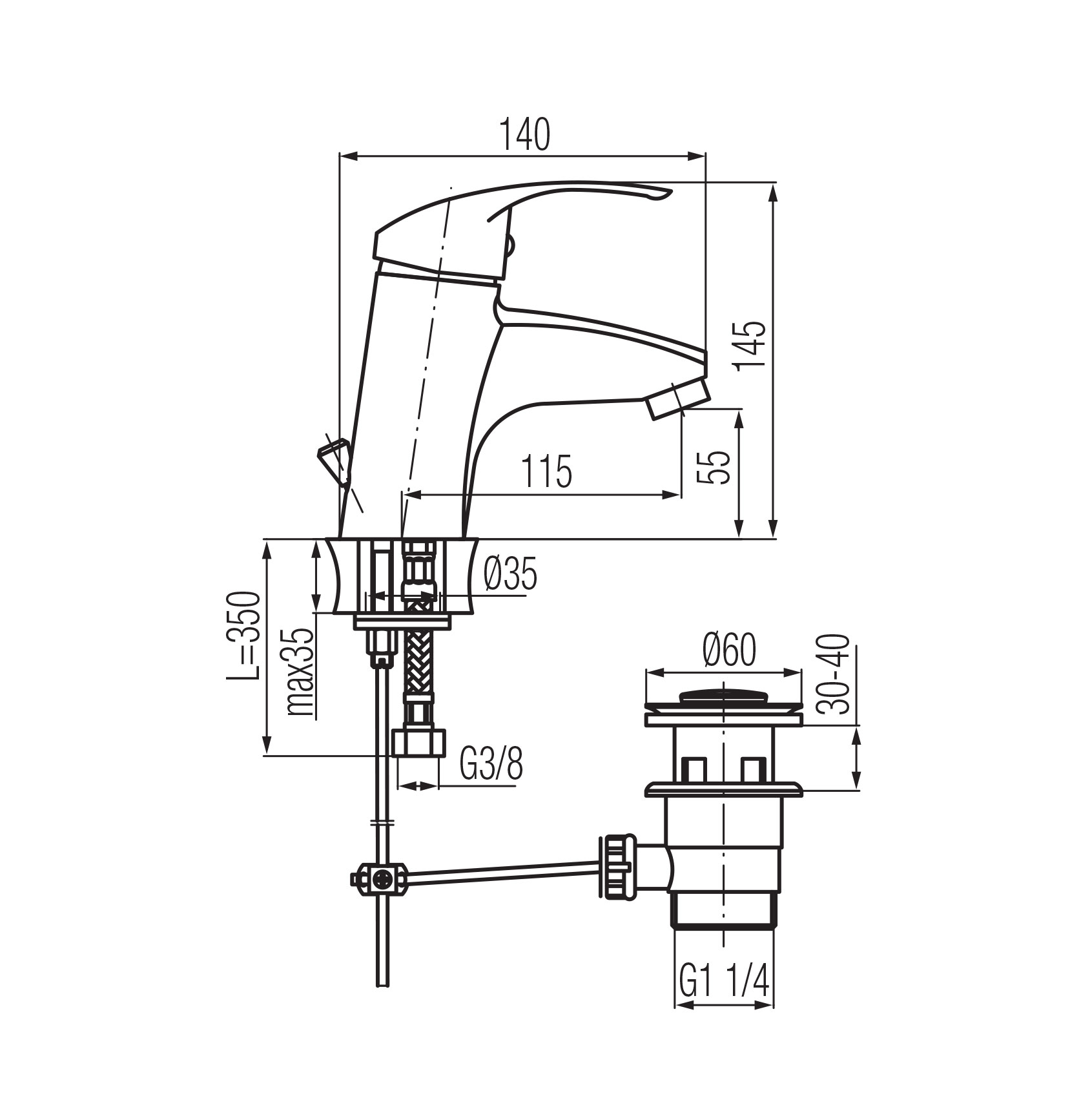 ANGELO Bateria umywalkowa stojąca ze spustem