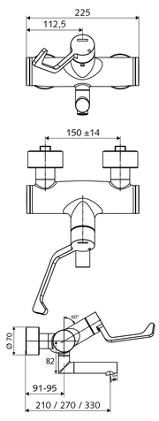 Armatura umywalkowa VITUS VW-AH-M, naścienna, wysięg 210 mm, z dźwignią łokciową, z mieszaczem