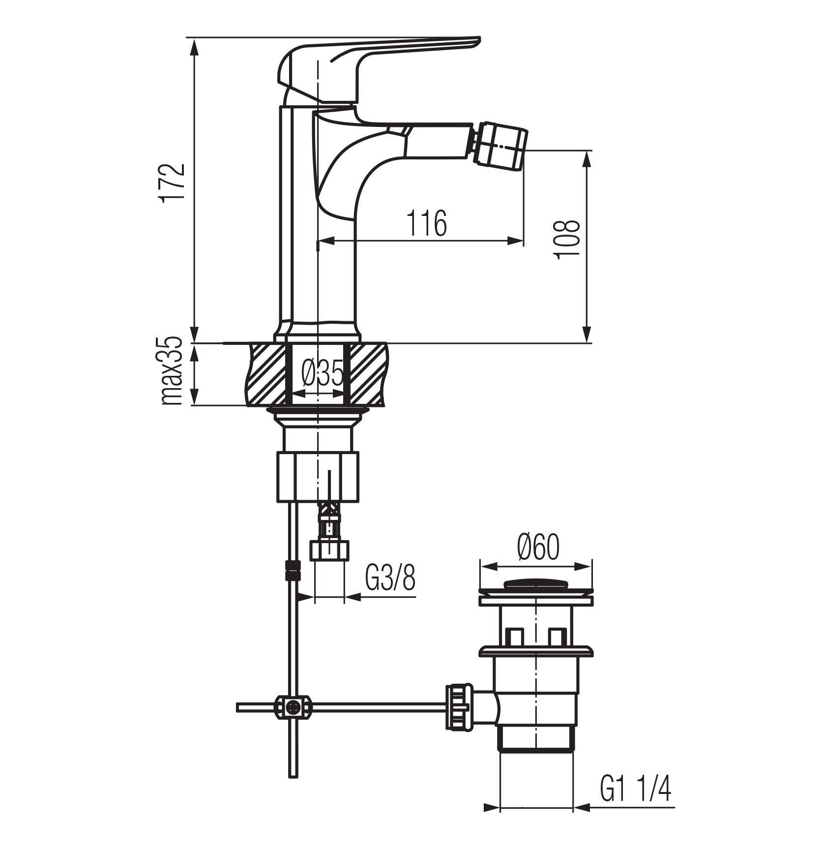 AURORA Bateria bidetowa stojąca z korkiem spustowym