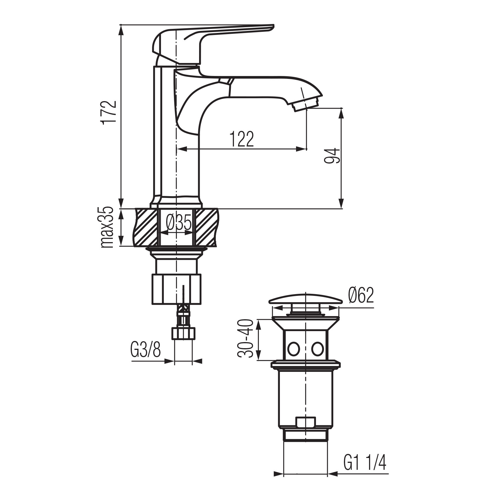 AURORA Bateria umywalkowa stojąca z automatycznym korkiem spustowym