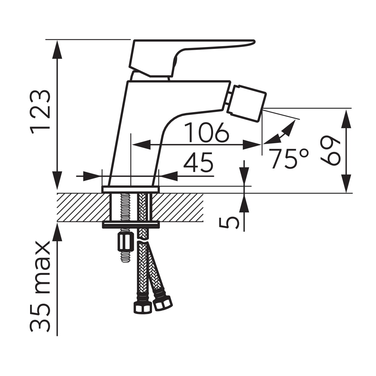 Oszczędnościowa bateria bidetowa w nowoczesnym, prostokątnym dizajnie. Aerator z ogranicznikiem przepływu i funkcją napowietrzania redukuje zużycie wody przy jednoczesnym zachowaniu komfortu użytkowania. System Easy Clean ułatwi usuwanie osadu wapiennego z sitka aeratora.
