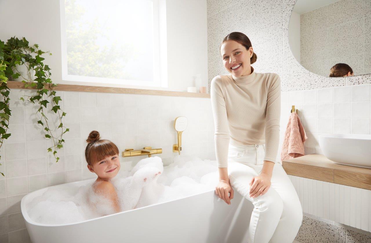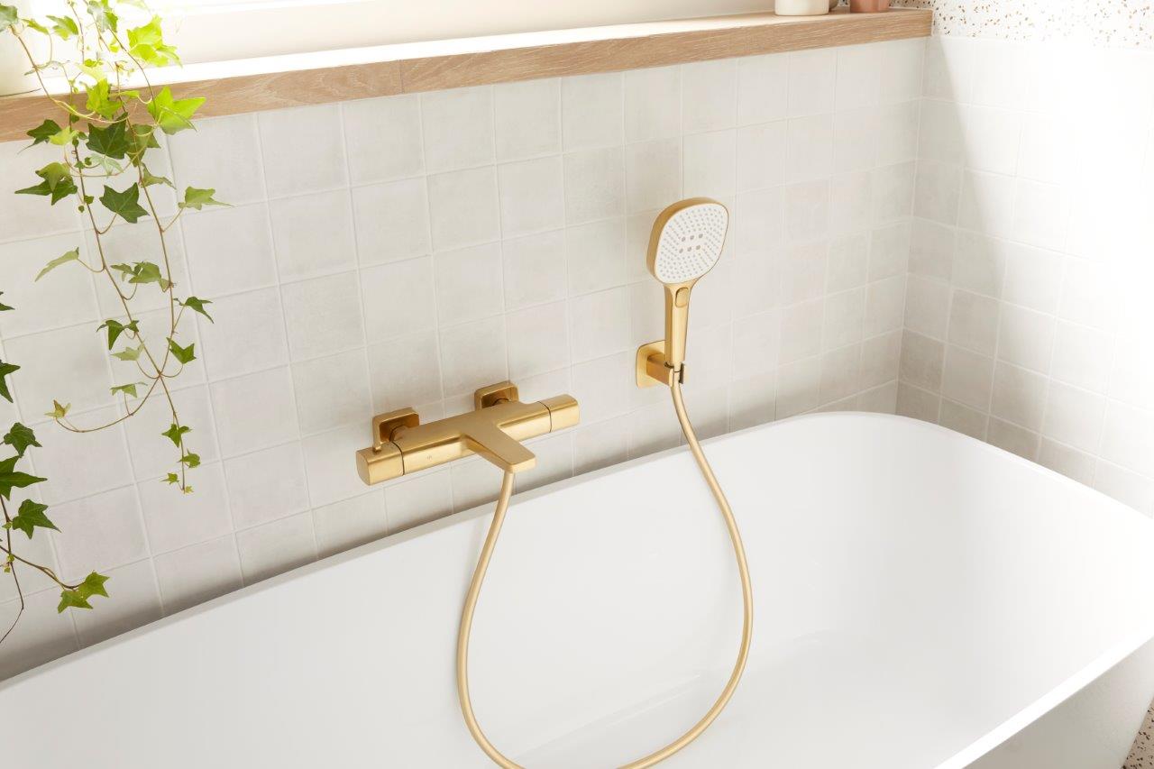 Bateria malaga, termostatyczna, wannowa, ścienna, pvd brushed gold