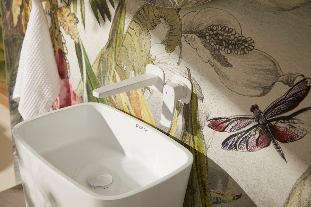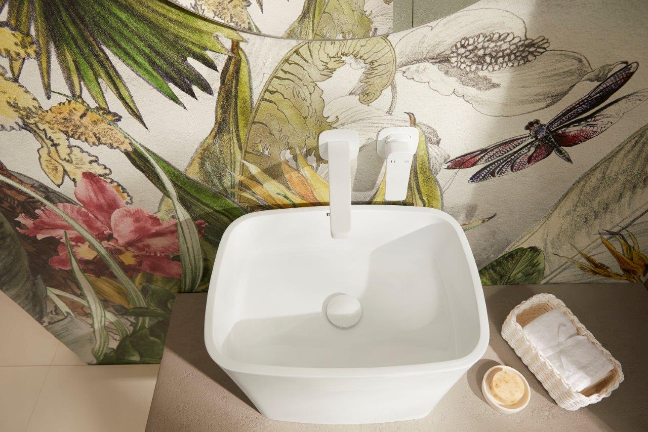 Bateria Malaga, umywalkowa, podtynkowa, ścienna, white