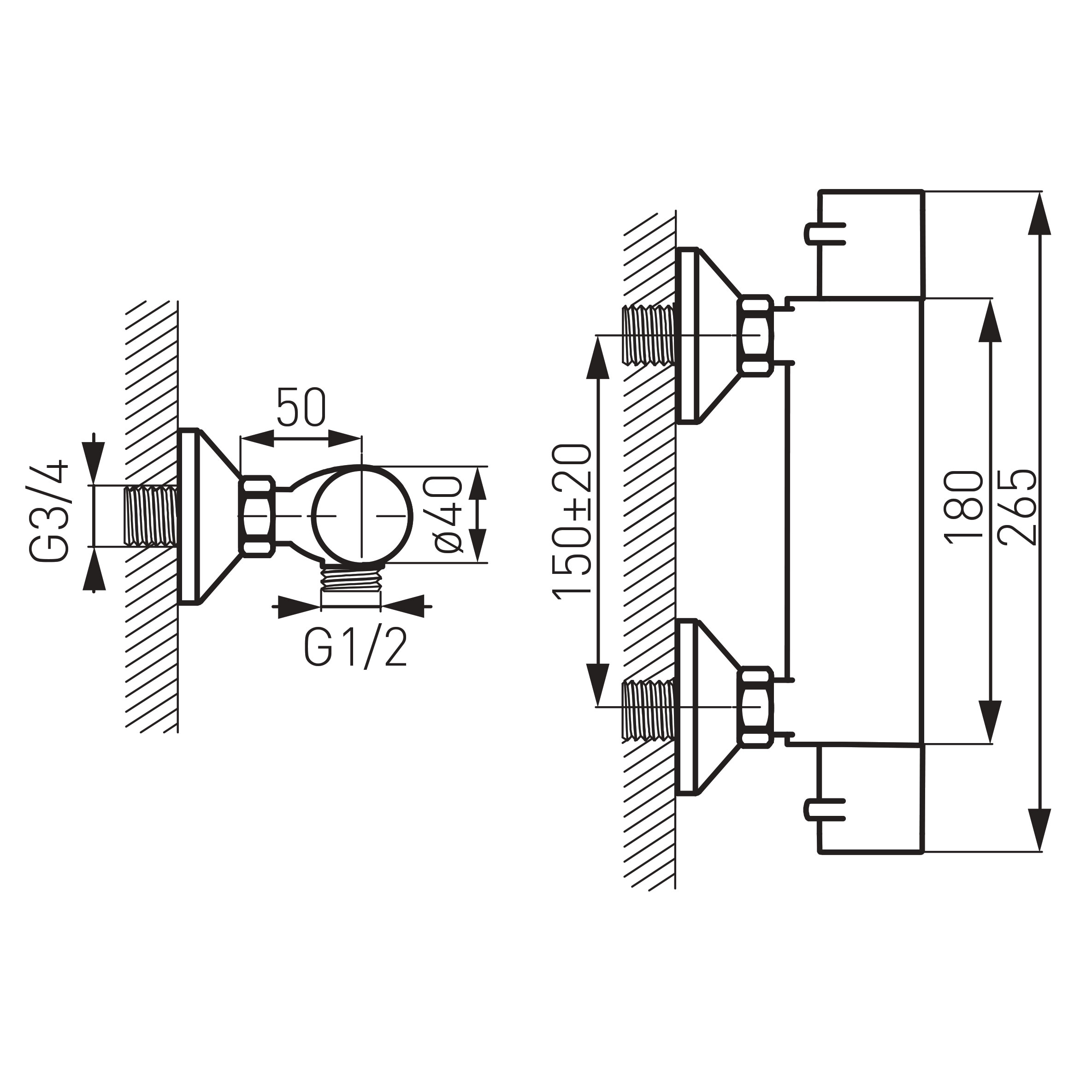Bateria natryskowa wyposażona jest w głowicę termostatyczną, która będzie dostarczać do baterii wodę o wybranej temperaturze. Funkcja termostatu zapewni również dodatkową ochronę przed poparzeniem się gorącą wodą. Uniwersalne przyłącze 1/2" pozwala na wybranie dowolnego zestawu natryskowego.