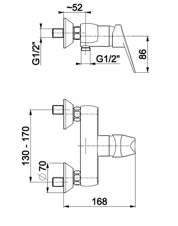 Bateria natryskowa ścienna KFA Armatura TOPAZ, kolor chrom