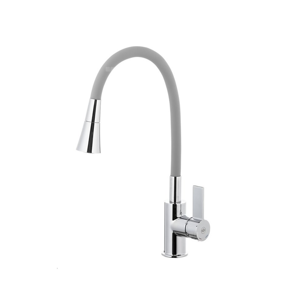Bateria RUMBA Duo kuchenna stojąca z elastyczną wylewką, chrom-szary