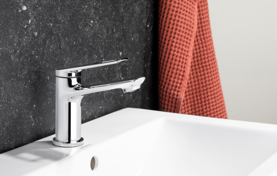 Bateria umywalkowa stojąca KFA Armatura AMAZONIT, chrom, montaż blat / otwór na baterię