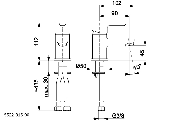 Bateria umywalkowa stojąca KFA Armatura GRANAT, chrom, montaż blat / otwór na baterię