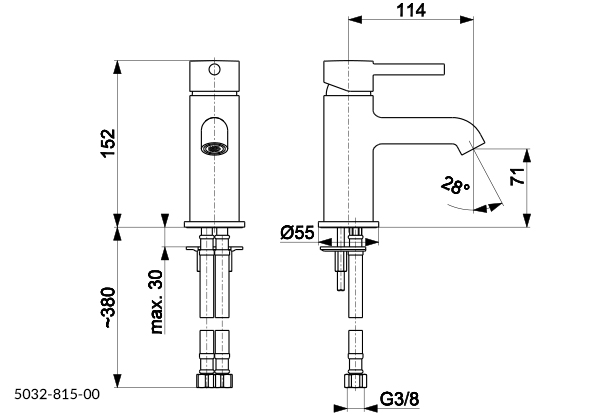 Bateria umywalkowa stojąca KFA Armatura MOZA click clack, chrom, montaż blat / otwór na baterię