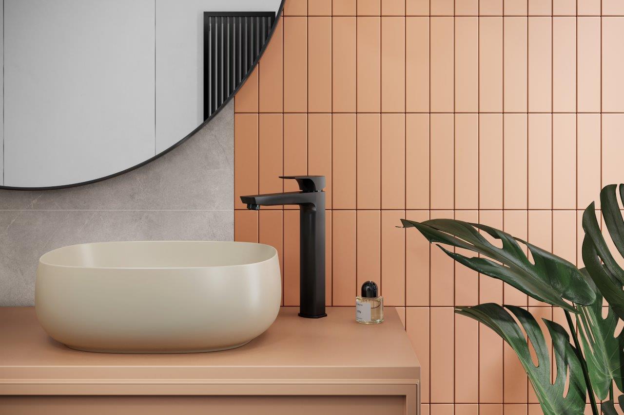 Bateria umywalkowa stojąca nablatowa KFA Armatura MOKAIT click clack, czarny, montaż blat / otwór na baterię