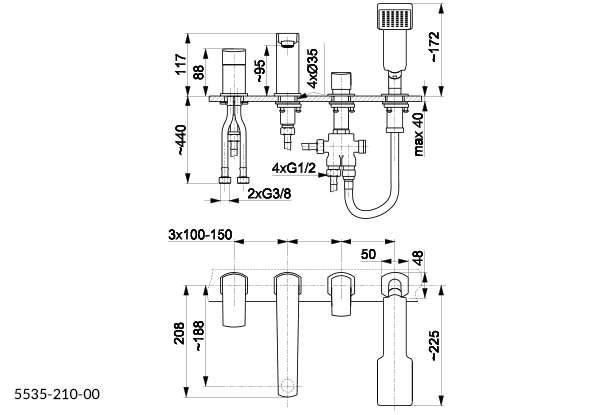 Bateria mokait wannowa stojąca 4-Otworowa black