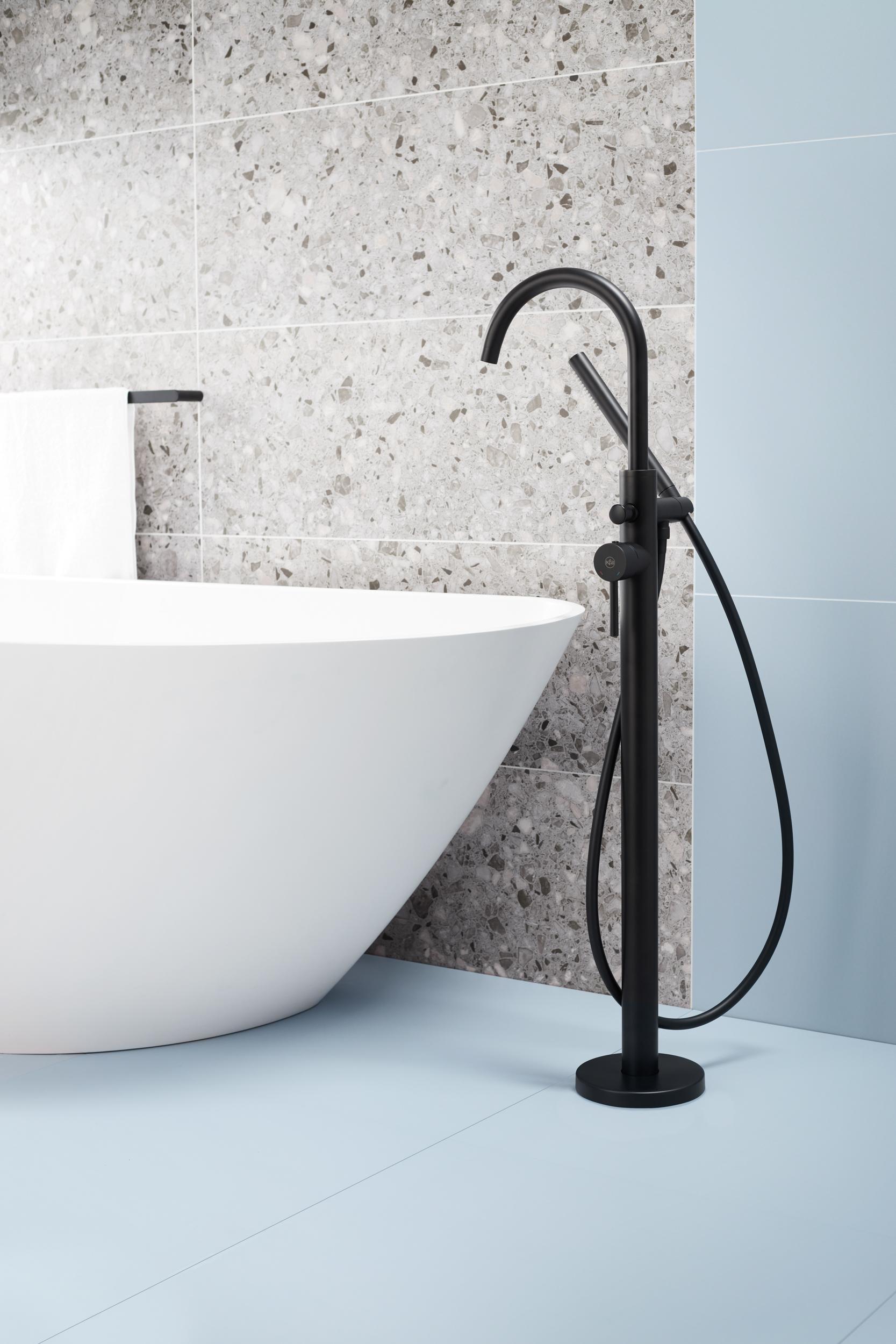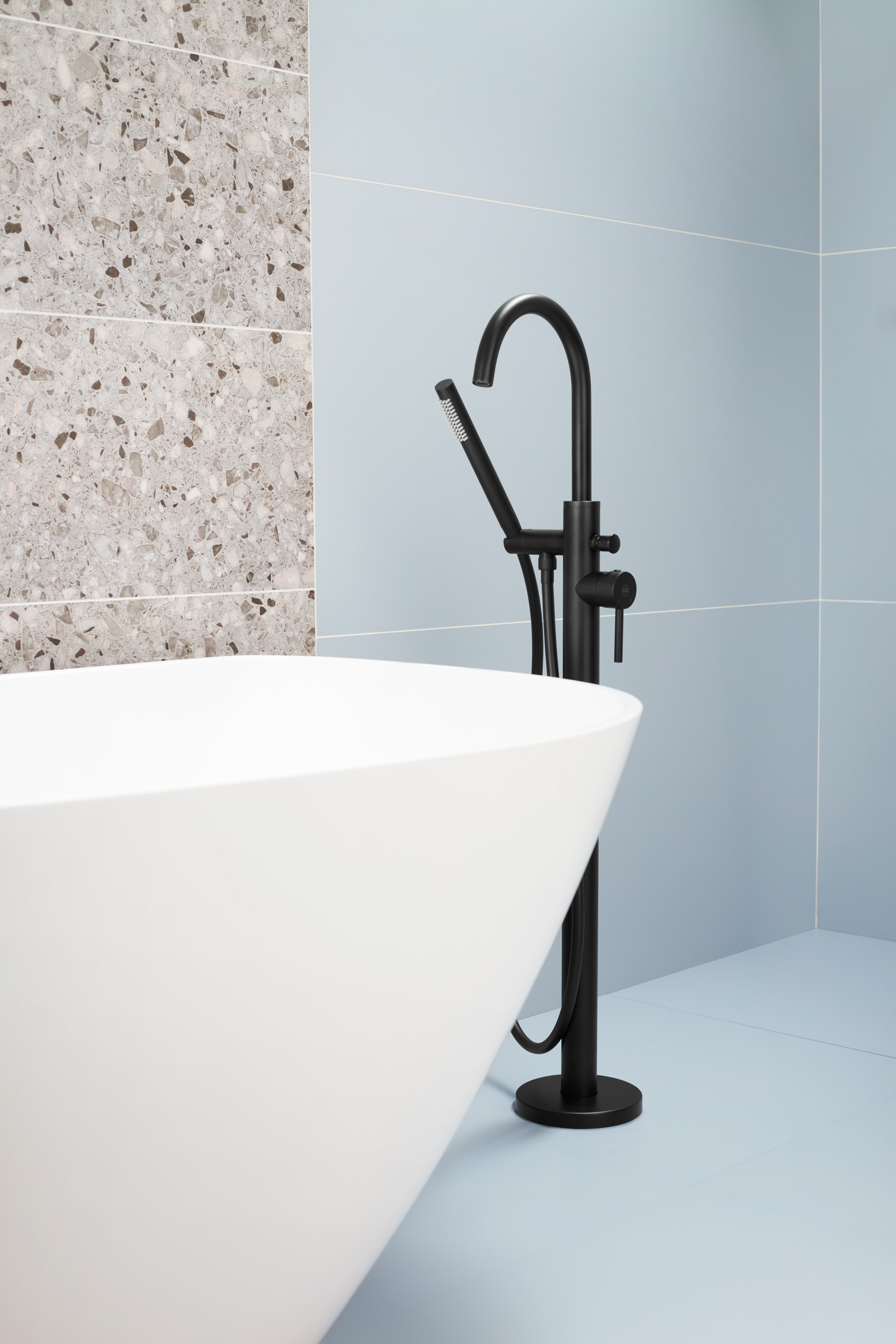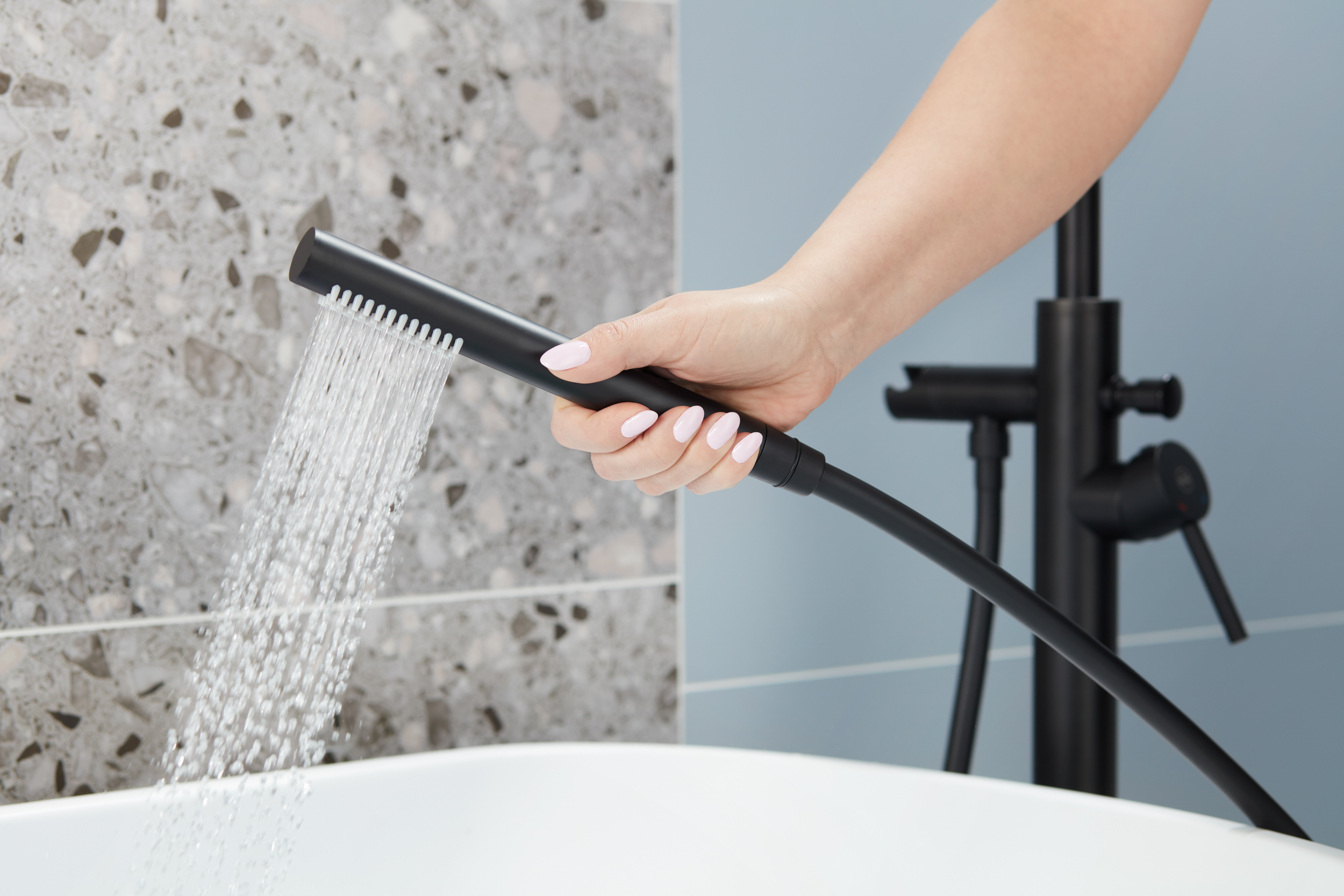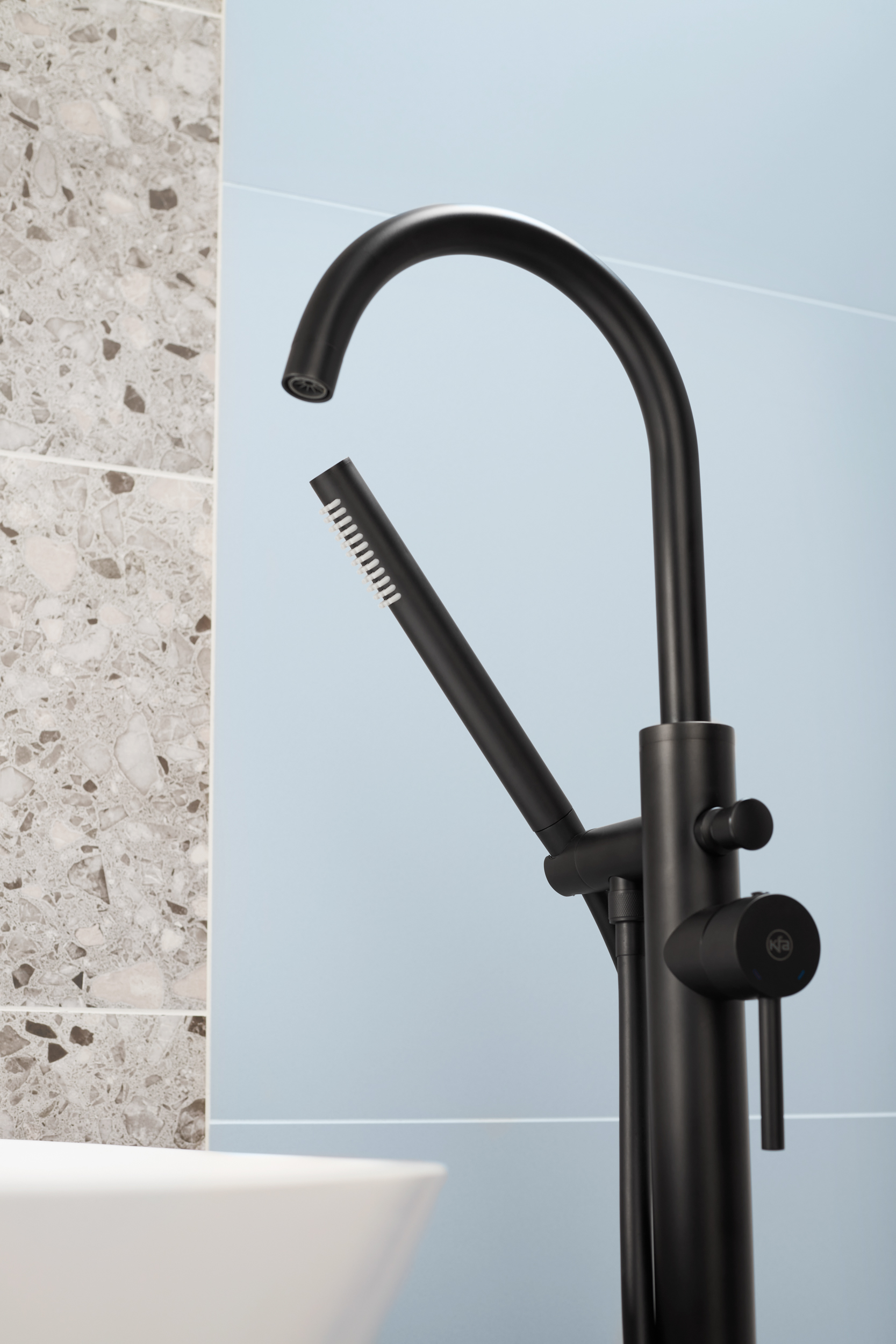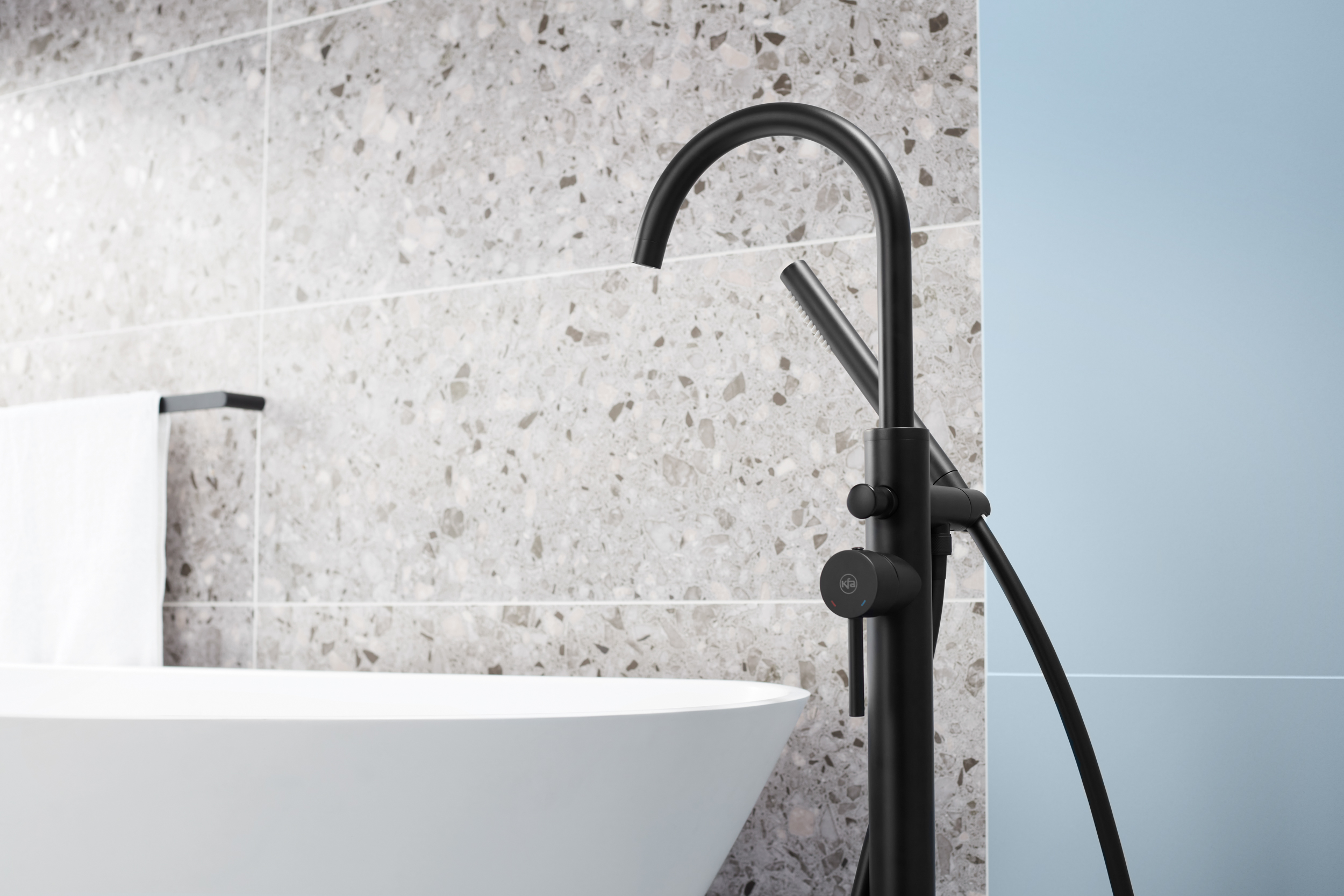 Bateria wannowa stojąca KFA Armatura MOZA, kolor czarny, montaż podłoga