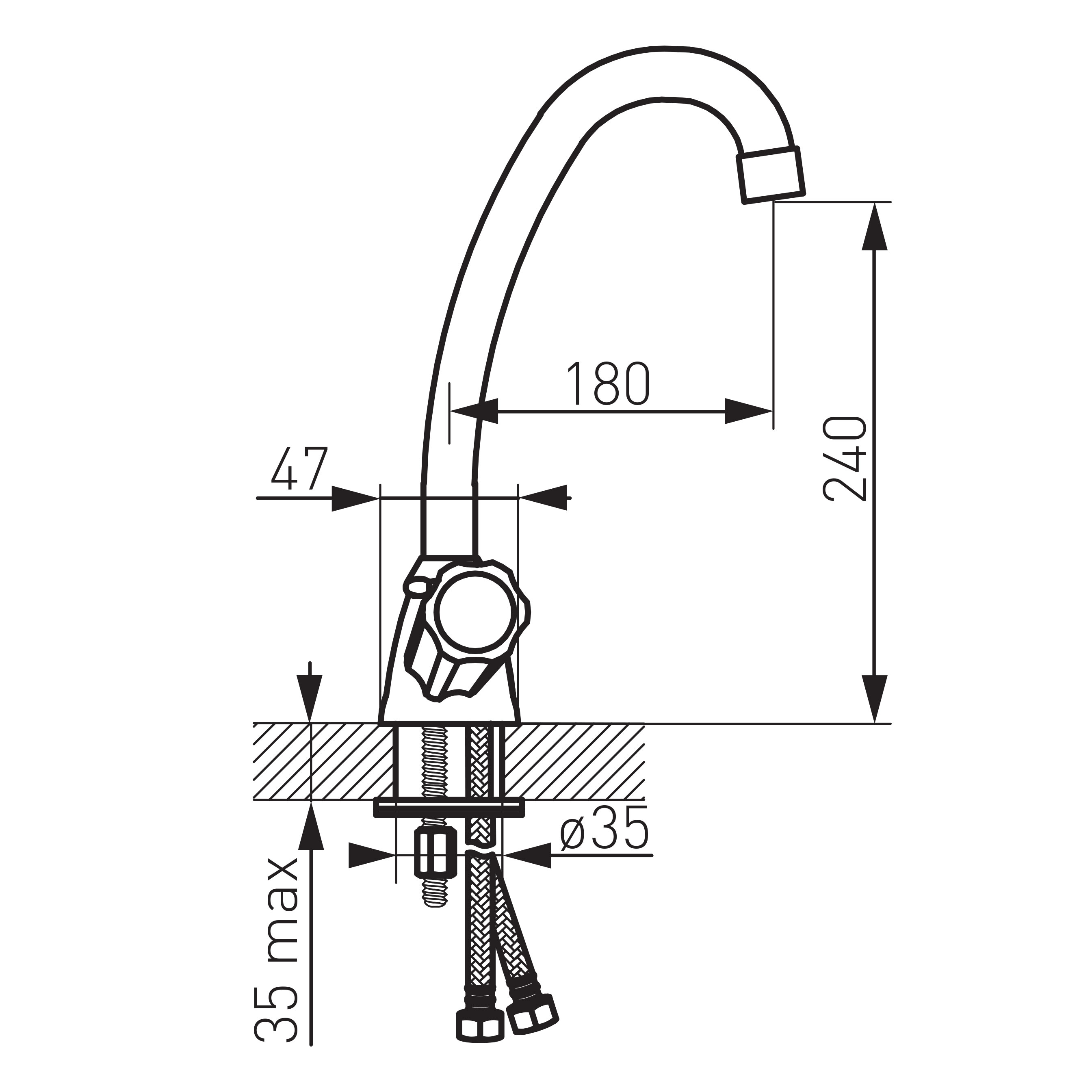 Bateria zlewozmywakowa stojąca, dwuuchwytowa wyposażona w ruchomą wylewkę, która zapewni zwiększoną funkcjonalność oraz łatwość obsługi podczas użytkowania.