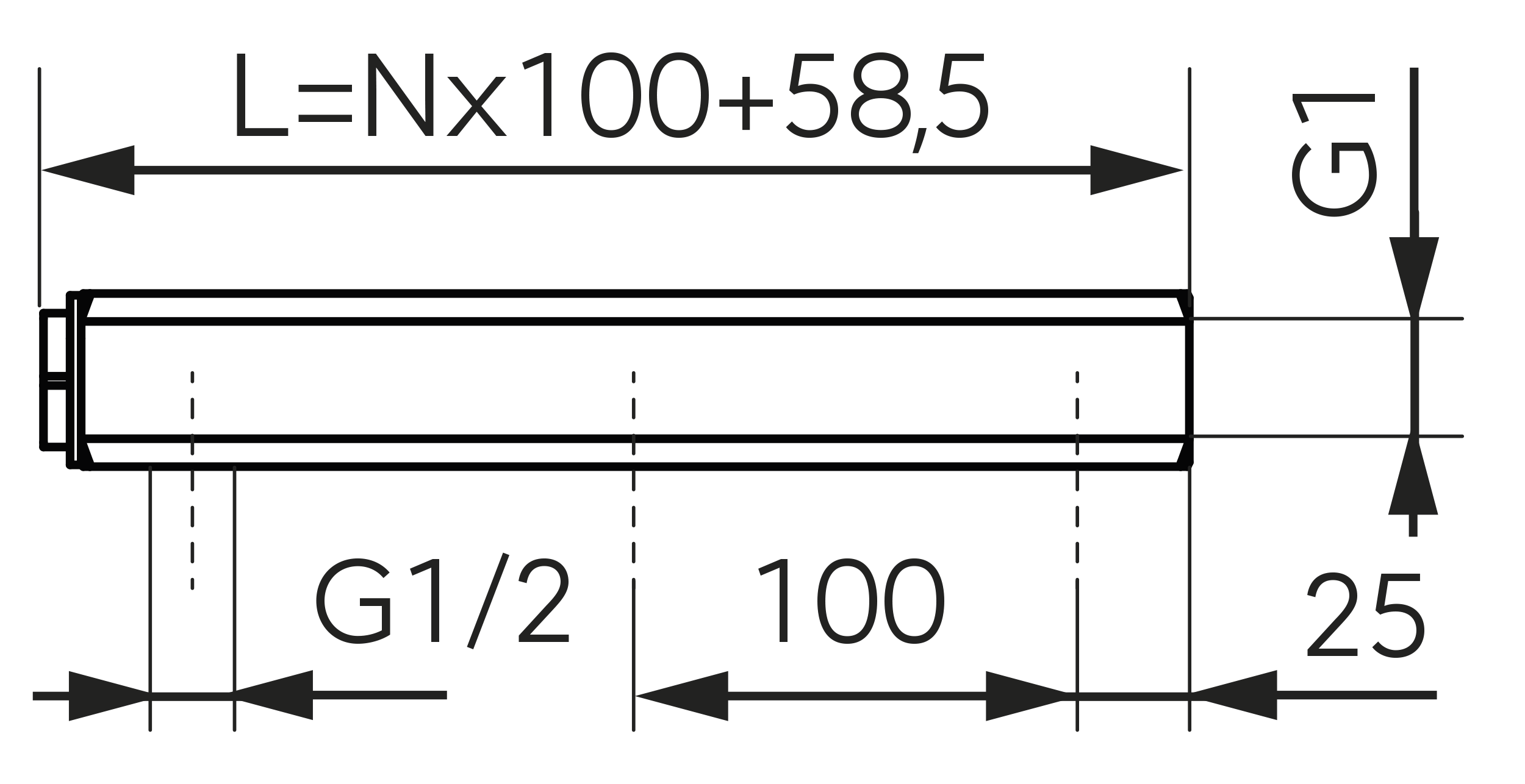 Belka rozdzielacza mosiężna, rozstaw podłączeń 100 mm, 4-drogowa