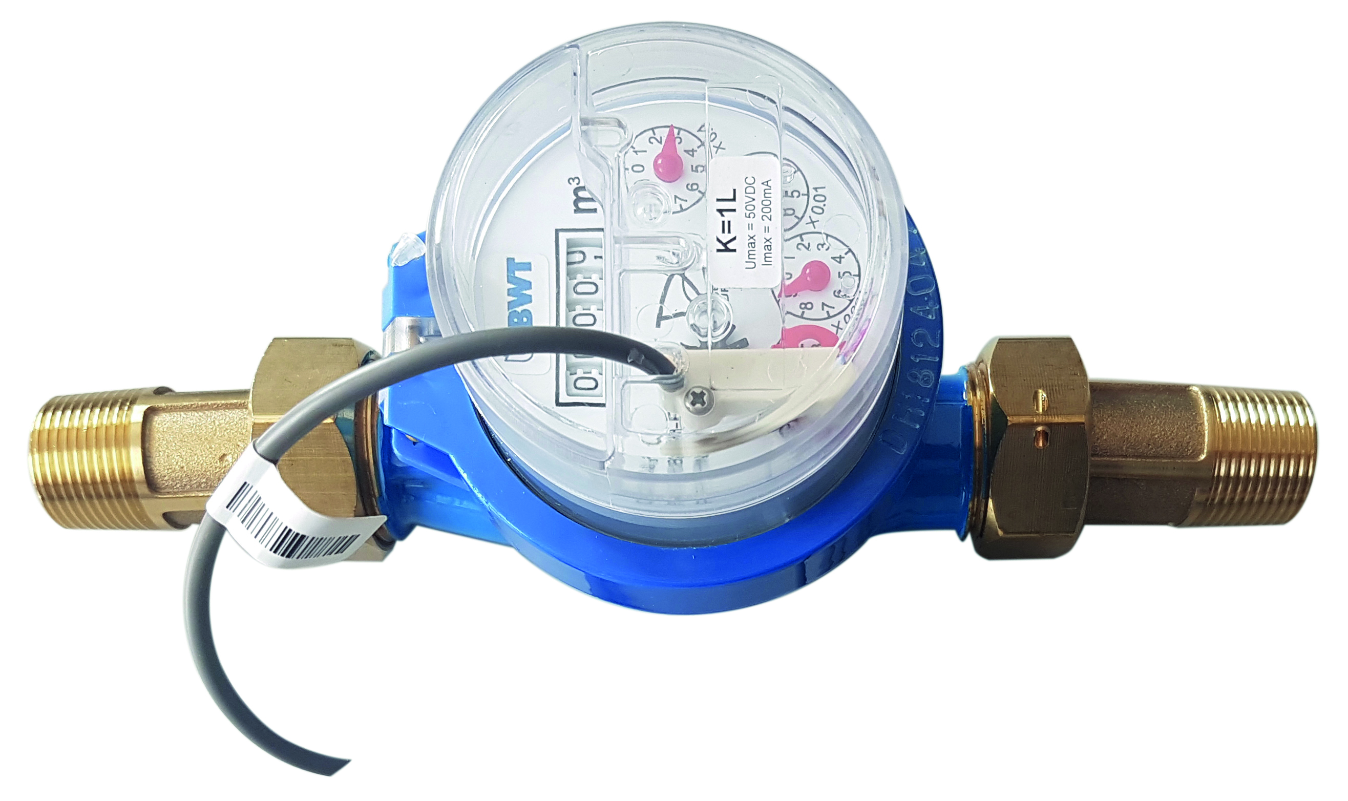 Wodomierz wielostrumieniowe, suchobieżny , przeznaczone do precyzyjnego pomiaru zużycia wody pitnej lub lekko zabrudzonej. Wodomierz w standardzie występuje z liczydłem pięciobębenkowym (IP54) oraz z korpusem mosiężnym. Wyposażony w nadajnik do zdalnego pomiaru objętości wody NK