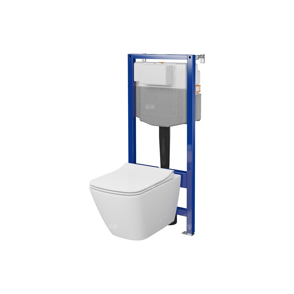Skład zestawu: - stelaż podtynkowy AQUA 50 PNEU QF z gwarancją długoletniego i bezproblemowego użytkowania - miska zawieszana CITY PRO by Cersanit SQUARE z technologią CERSANIT VORTEX oraz ukrytym montażem - deska duroplastowa SLIM, antybakteryjna, wolnoopadająca, z funkcją łatwego wypinania jednym przyciskiem Stelaż podtynkowy AQUA 50 PNEU QF do zabudowy suchej został wyposażony w szereg funkcjonalnych rozwiązań, które ułatwiają i przyspieszają montaż: hamulce w stopach stelaża, obrotowe galwanizowane stopy, system montażowy QUICK FIX, pozwalający na instalacje produktu w rogu pomieszczenia, kolano odpływowe z czterostopniową regulacją głębokości, oznaczenie ‘1 metra’ ułatwiające określenie wysokości zawieszenia miski oraz kod kolorystyczny ułatwiający montaż stelaża. Łatwość instalacji dopełnia możliwość regulacji elementów wewnętrznych zbiornika bez użycia narzędzi oraz wężyk przyłączeniowy wyposażony w końcówki o-ring, które z łatwością można dokręcić ręką. Zbiornik stelaża został wykonany w nowoczesnej technologii rozdmuchu- jednoczęściowa konstrukcja z wytrzymałego tworzywa zapewnia szczelność i bezpieczeństwo na długie lata użytkowania. Regulacja ilości spłukiwanej wody, precyzyjnie i płynnie działający zawór spustowy pneumatyczny, ultra cichy zawór napełniający z metalową końcówką, izolacja styropianowa wokół zbiornika, czy FRESH SYSTEM, czyli specjalny koszyczek do kostek odświeżających, który gwarantuje higienę na dłużej – wszystko to składa się na najwyższą jakość użytkową systemu spłukującego AQUA. Wybrany przycisk spłukujący pneumatyczny, do zakupu oddzielnie.