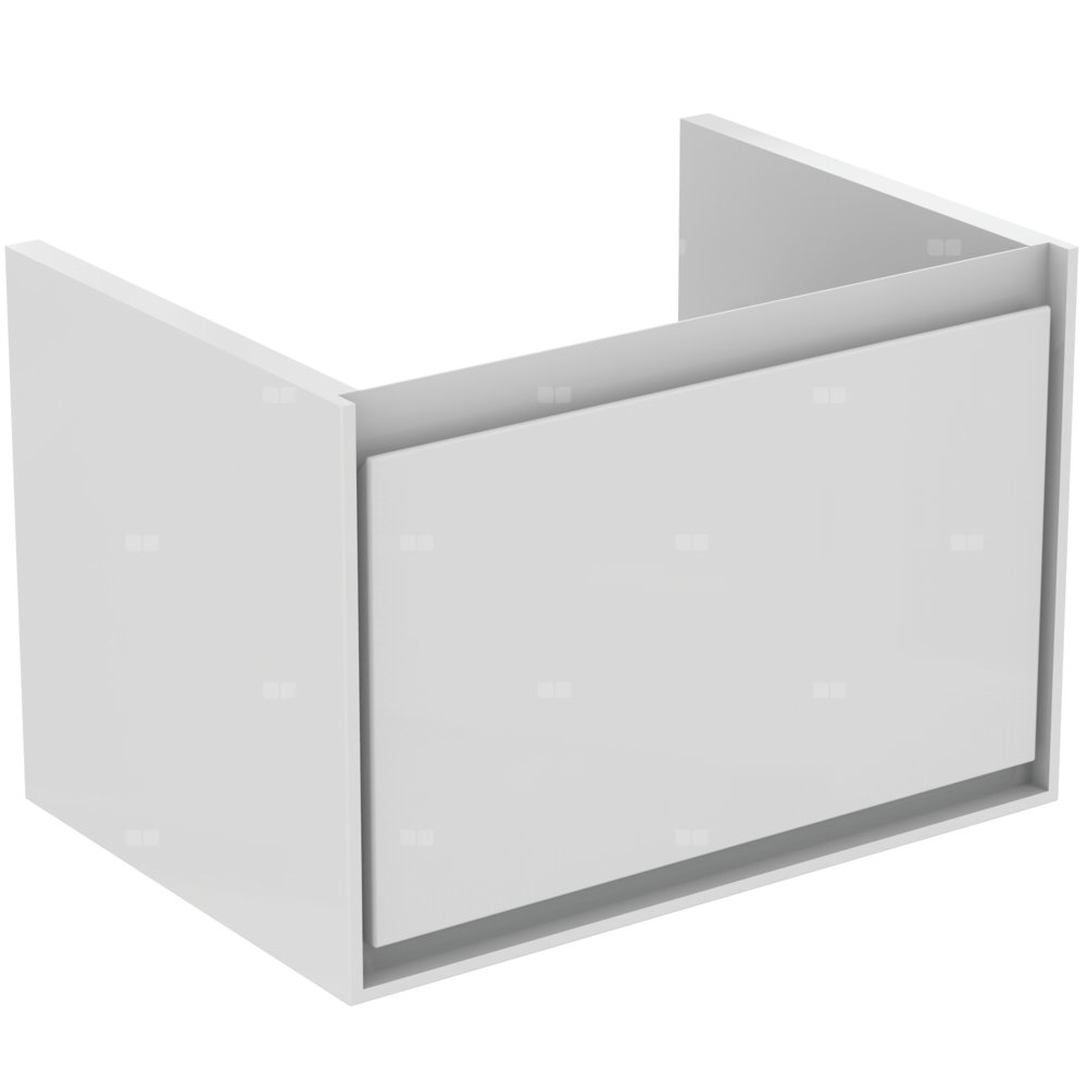 Wisząca. 1 szuflada ze zintegrowanym uchwytem. Szuflady z systemem samodomykania. Zestaw montażowy w komplecie. Szafka do skompletowania z: umywalką Cube 65 cm E074101. Zalecany: syfon oszczędzający przestrzeń EE23033967 (zamawiany oddzielnie).