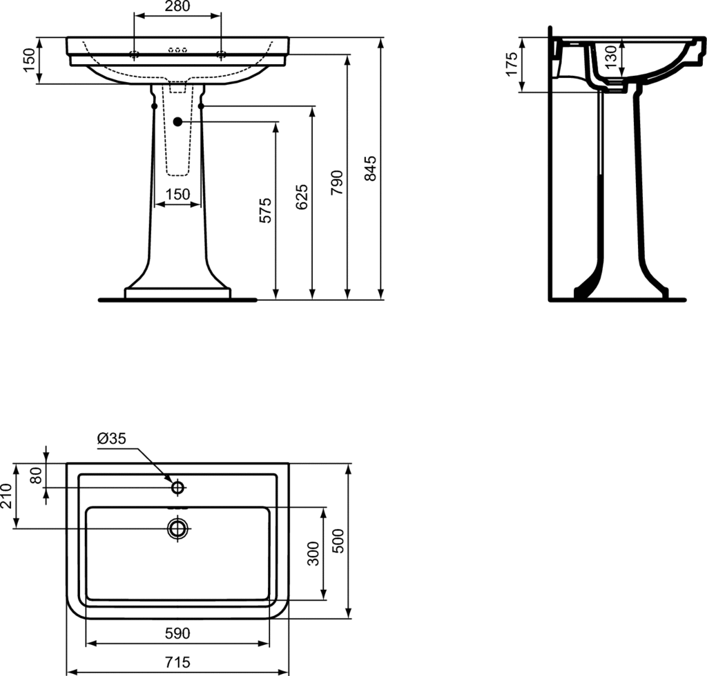 Umywalka wisząca Calla z 1 otworem na baterię wybijanym i przelewem (z 3 otworami). Do montażu z: Calla Pedestal lub samodzielnie z syfonem Design. Zobacz listę wyposażenia opcjonalnego w katalogu/cenniku Atelier Collections.