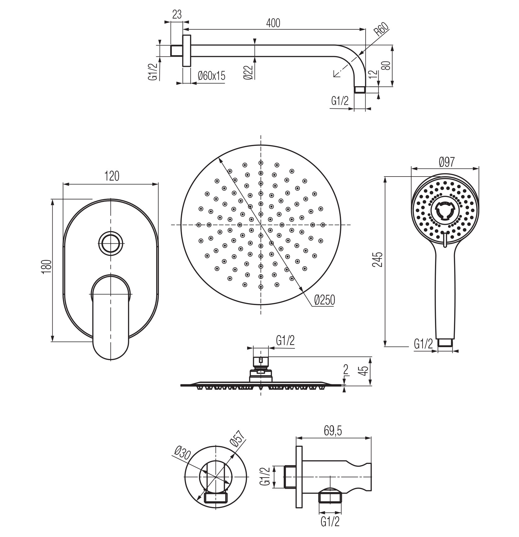 - ultracienka stalowa deszczownica o wymiarach ø250 mm
