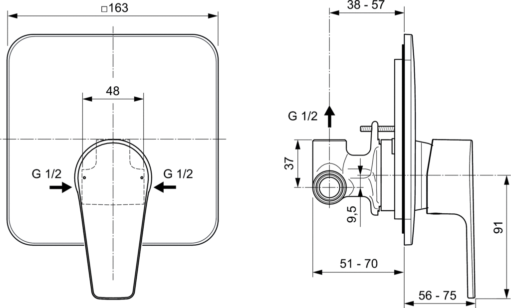 Zestaw montażowy podtynkowej baterii natryskowej (kompletny). Głowica IS 47 mm CLICK. Metalowy uchwyt z nadrukowanymi czerwonymi i niebieskimi oznaczeniami. Metalowa rozeta. Wykończenie: galwaniczne (AA), malowane proszkowo (U8). Zgodny z EN817.