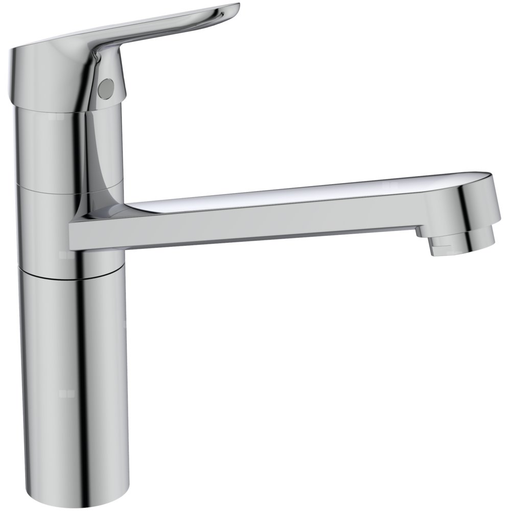 Ruchoma, wysoka wylewka. Metalowy uchwyt z nadrukowanymi czerwonymi i niebieskimi oznaczeniami. Głowica 38 mm CLICK z funkcją ECO i ograniczenikiem temperatury wody. Aerator typu Perlator M24x1. Wężyki przyłączeniowe G3/8”.