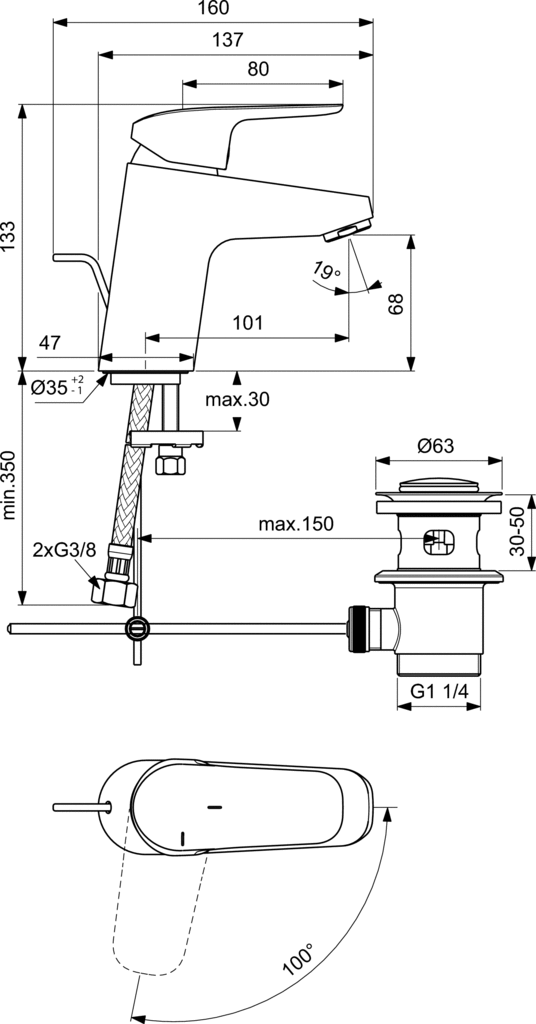 Głowica ceramiczna 40 mm z ogranicznikiem temperatury. Odlewany korpus z mosiądzu. Metalowy uchwyt z nadrukowanymi czerwonymi i niebieskimi oznaczeniami. Aerator typu Perlator, 5l/min. Metalowy korek automatyczny. Wężyki przyłączeniowe G3/8”. System montażu EASY-FIX. Zgodność z EN817.