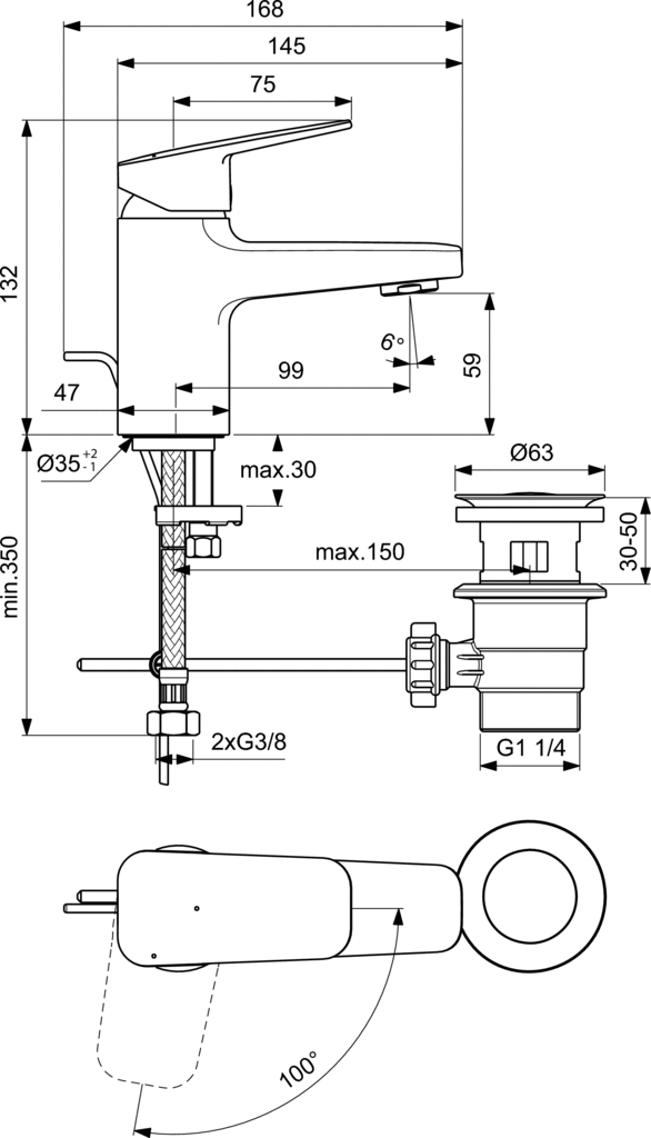 - Min. głębokość: 168 mm