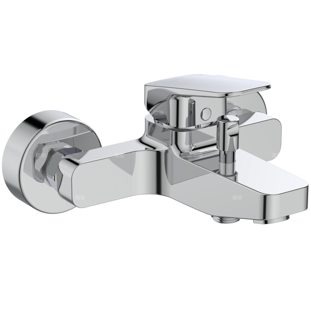 Innowacyjna ceramiczna głowica FirmaFlow®, 38 mm, z funkcją. ograniczenia temperatury wody. Metalowy uchwyt z oznaczeniem wody: ciepła/zimna. Przełącznik automatyczny wanna/natrysk. Zawór zwrotny. Przyłącza mimośrodowe. Metalowe rozety maskujące.