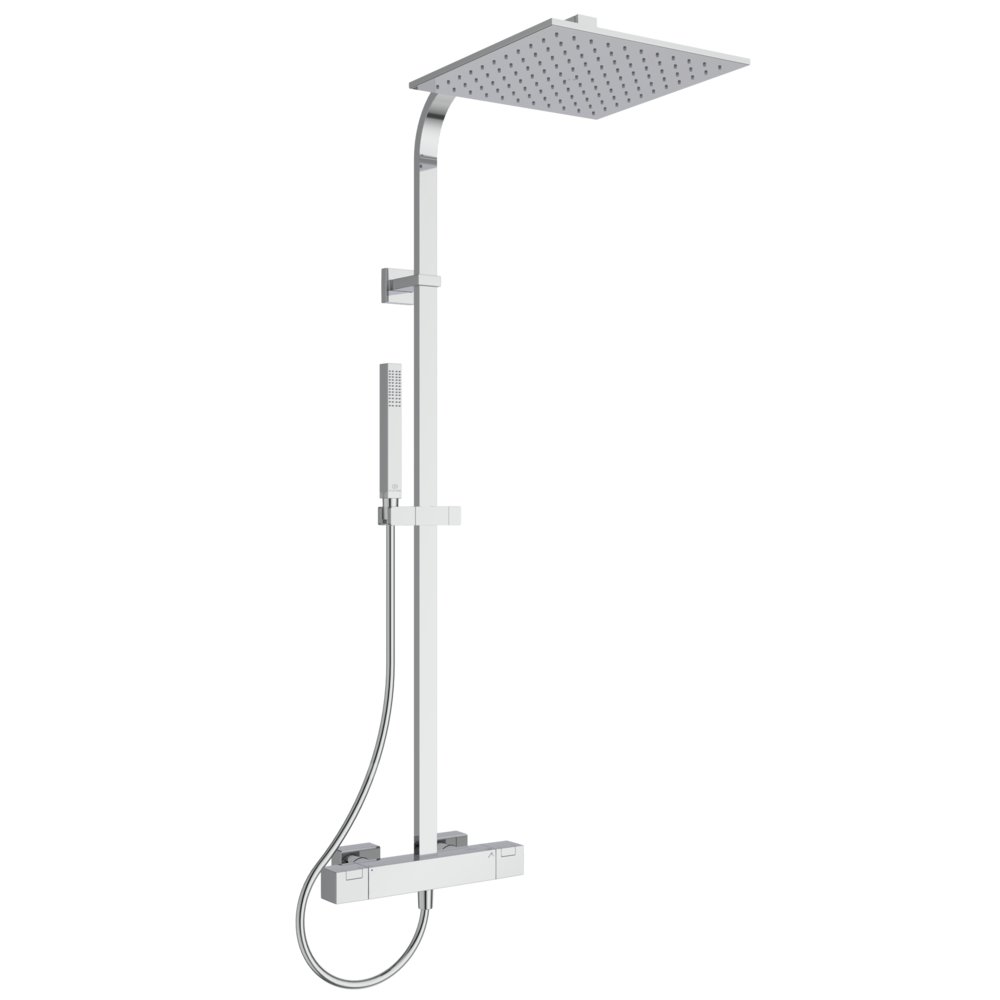 System natryskowy termostatyczny z akcesoriami. Bateria termostatyczna natryskowa naścienna Ceratherm C100. Zawór zwrotny. Głowica termostatyczna ECO z przyciskiem redukującym przepływ wody o 50%. Funkcja Cool body zapobiegająca poparzeniu przez korpus baterii. Ukryte przyłącza mimośrodowe (regulowane 137 mm - 163 mm). Funkcja Alti-Kalk. Zintegrowany ogranicznik temperatury. Lewy uchwyt sterujący do ustawiania temperatury wody, prawy do regulacji przepływu. Akcesoria: Deszczownica, 300x300 mm, z ogranicznikiem przepływu wody do 12 l/min. Słuchawka prysznicowa jednofukncyjna. Wąż Idealflex długości 1750 mm. Metalowe mocowanie do ściany wraz z uchwytem na słuchawkę.