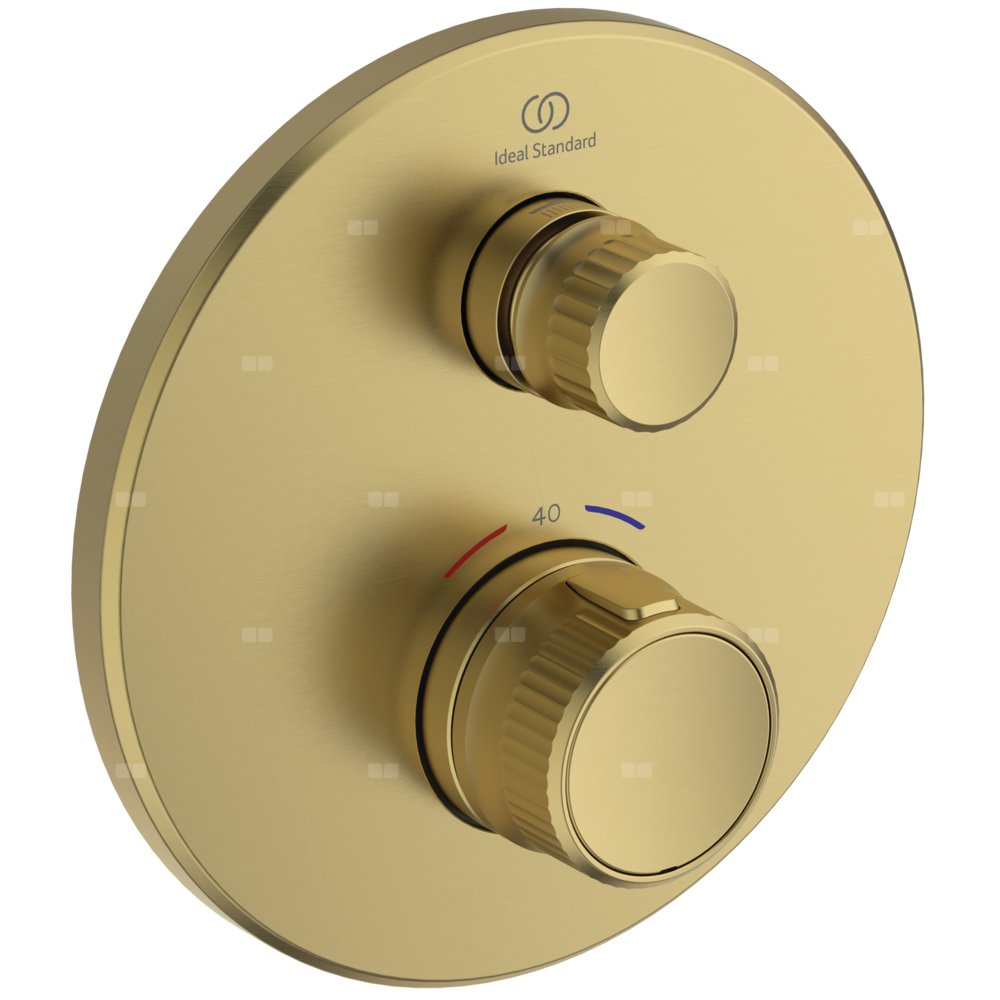 Zestaw montażowy podtynkowej baterii termostatycznej natryskowej Ceratherm Navigo. Bateria z pojedynczym przyciskiem. Głowica FirmaFlow Therm z precyzyjną kontrolą temperatury. Uchwyt z ogranicznikiem temperatury do 40°C. Włączanie/wyłączanie odbywa się za pomocą wciskania przycisku a regulacja przepływu za pomocą jego obracania. Smukła metalowa rozeta. Uszczelniony szyld pod rozetę izolujący wodę od ściany. Do skompletowania z zestawem A1000NU (część wewnętrzna).