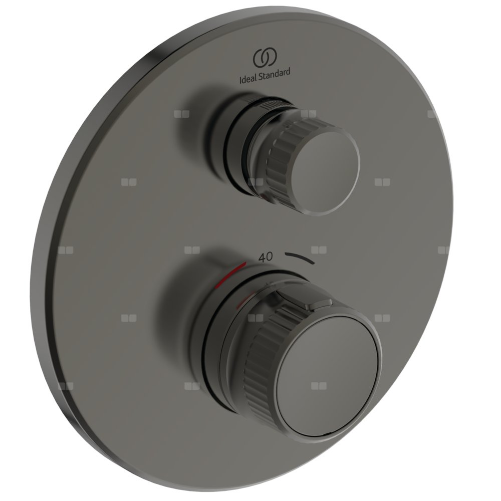Zestaw montażowy podtynkowej baterii termostatycznej natryskowej Ceratherm Navigo. Bateria z pojedynczym przyciskiem. Głowica FirmaFlow Therm z precyzyjną kontrolą temperatury. Uchwyt z ogranicznikiem temperatury do 40°C. Włączanie/wyłączanie odbywa się za pomocą wciskania przycisku a regulacja przepływu za pomocą jego obracania. Smukła metalowa rozeta. Uszczelniony szyld pod rozetę izolujący wodę od ściany. Do skompletowania z zestawem A1000NU (część wewnętrzna).
