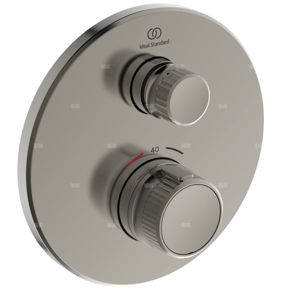 Zestaw montażowy podtynkowej baterii termostatycznej natryskowej Ceratherm Navigo. Bateria z pojedynczym przyciskiem. Głowica FirmaFlow Therm z precyzyjną kontrolą temperatury. Uchwyt z ogranicznikiem temperatury do 40°C. Włączanie/wyłączanie odbywa się za pomocą wciskania przycisku a regulacja przepływu za pomocą jego obracania. Smukła metalowa rozeta. Uszczelniony szyld pod rozetę izolujący wodę od ściany. Do skompletowania z zestawem A1000NU (część wewnętrzna).