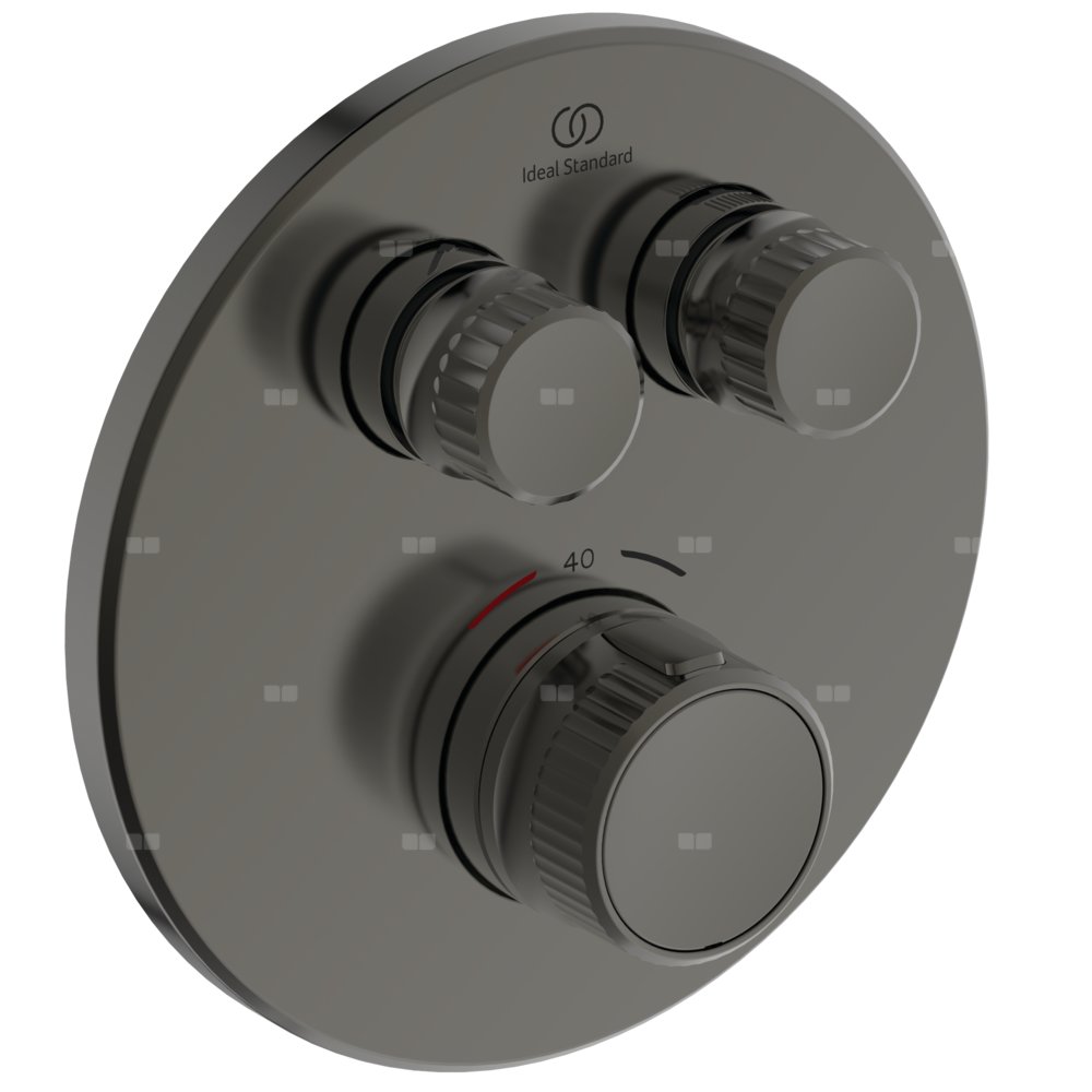 Zestaw montażowy podtynkowej baterii termostatycznej natryskowej Ceratherm Navigo. Bateria z dwomai przyciskami. Głowica FirmaFlow Therm z precyzyjną kontrolą temperatury. Uchwyt z ogranicznikiem temperatury do 40°C. Włączanie/wyłączanie odbywa się za pomocą wciskania przycisku a regulacja przepływu za pomocą obracania kolejnego. Smukła metalowa rozeta. Uszczelniony szyld pod rozetę izolujący wodę od ściany. Do skompletowania z zestawem A1000NU (część wewnętrzna).