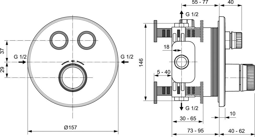 Dzięki Navigo® regulacja przepływu wody w zadanej temperaturze to jeden płynny ruch wciśnięcia i przekręcenia. Ceratherm Navigo jest łatwy w obsłudze dzięki ergonomicznym uchwytom i odpowiedniej odległości między elementami sterującymi.